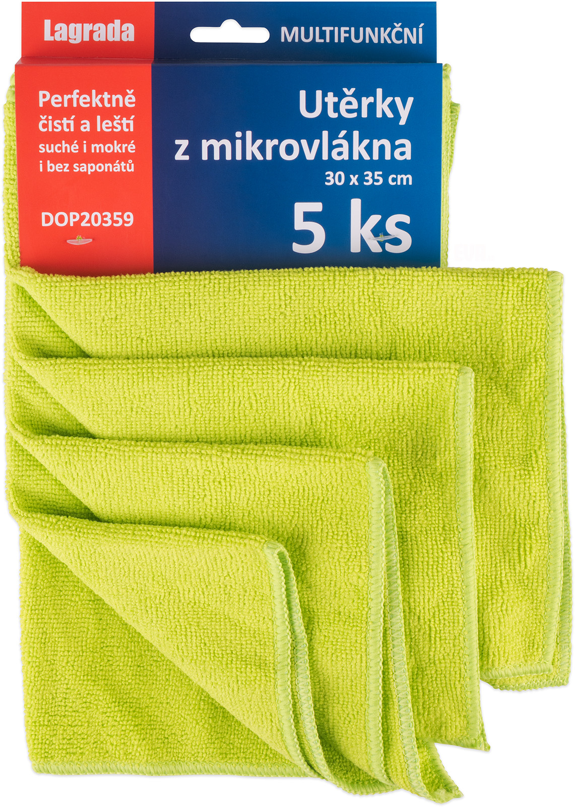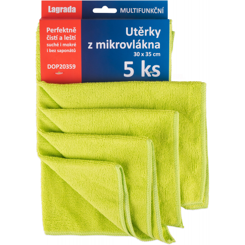 Sada 5 ks univerzálních úklidových utěrek z mikrovlákna o rozměrech 30 x 35 cm. Hmotnost materiálu 250 g/m2. Složení: 80% polyester, 20% polyamid. Perfektně čistí a leští suché i mokré povrchy i bez použití saponátů. Výborně sají a nepouští vlákna. Jedná se o tzv. švédské utěrky, celý popis které jsou nepřekonatelné v péči o všechny povrchy, dají se prát a opravdu dlouho vydrží. Švédské utěrky Lagrada si opravdu oblíbíte.
