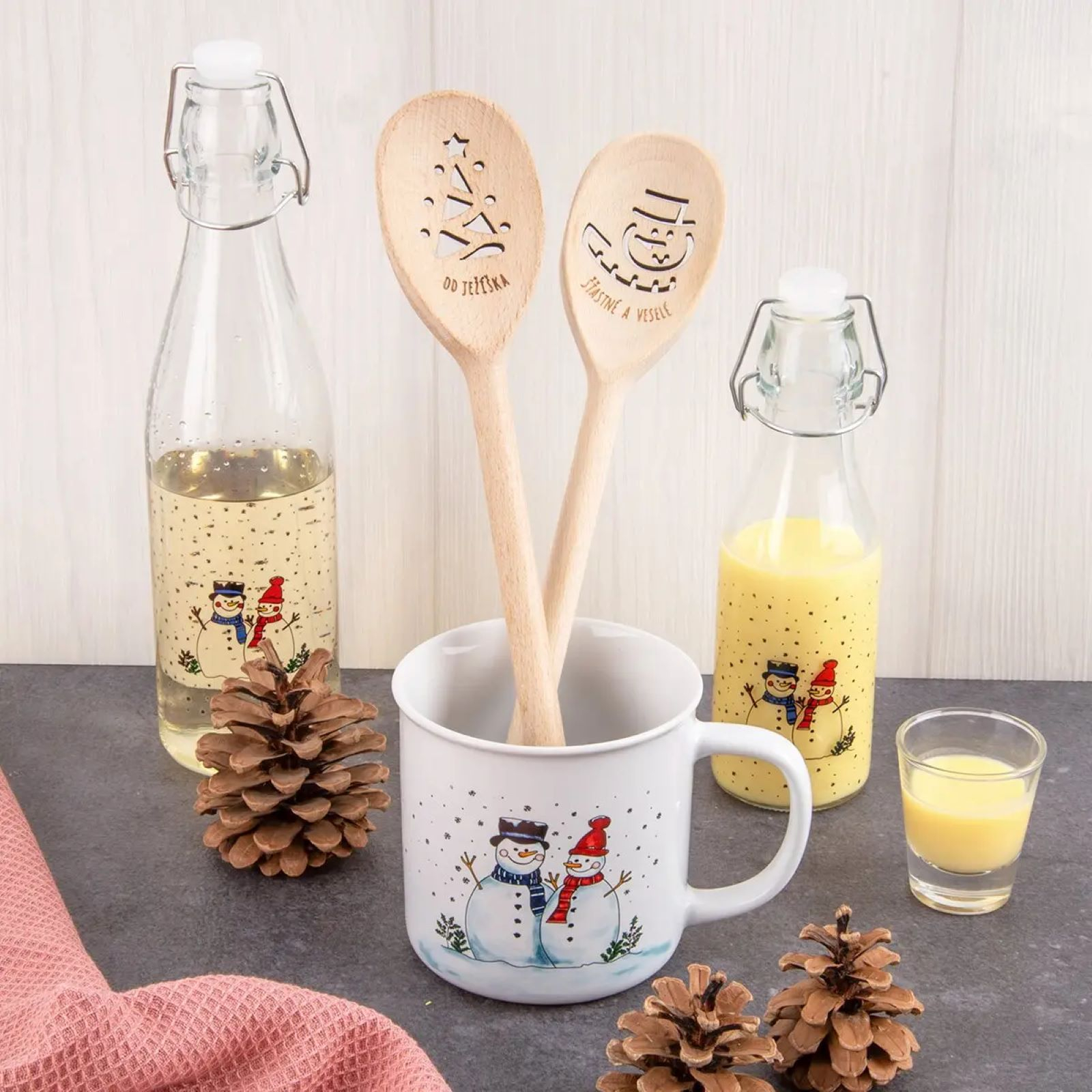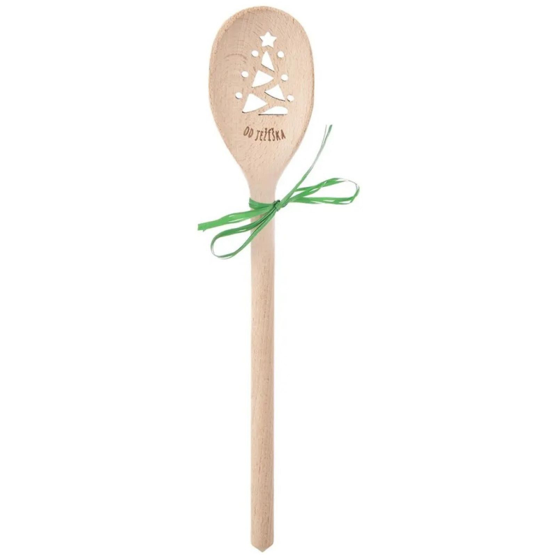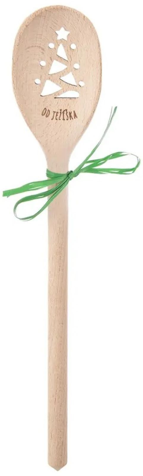 Oválná vařečka s vypalovaným dekorem vánočního stromku a nápisem "OD JEŽÍŠKA", je vyrobena z bukového dřeva, šířka 5,5 cm.