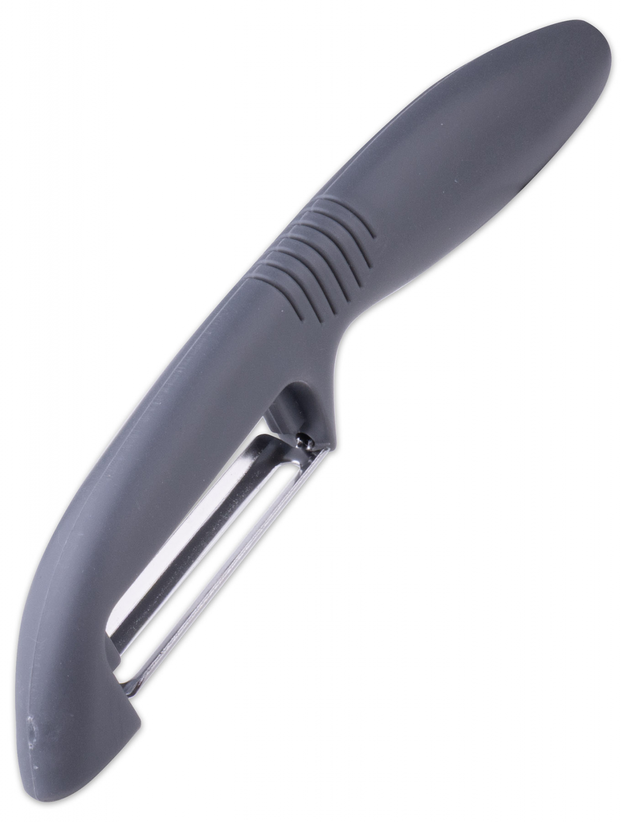 Škrabka na brambory s podélnou čepelí. Vhodná pro praváky i leváky. Materiál plast/nerez. Celková délka 17cm. Barva šedá.