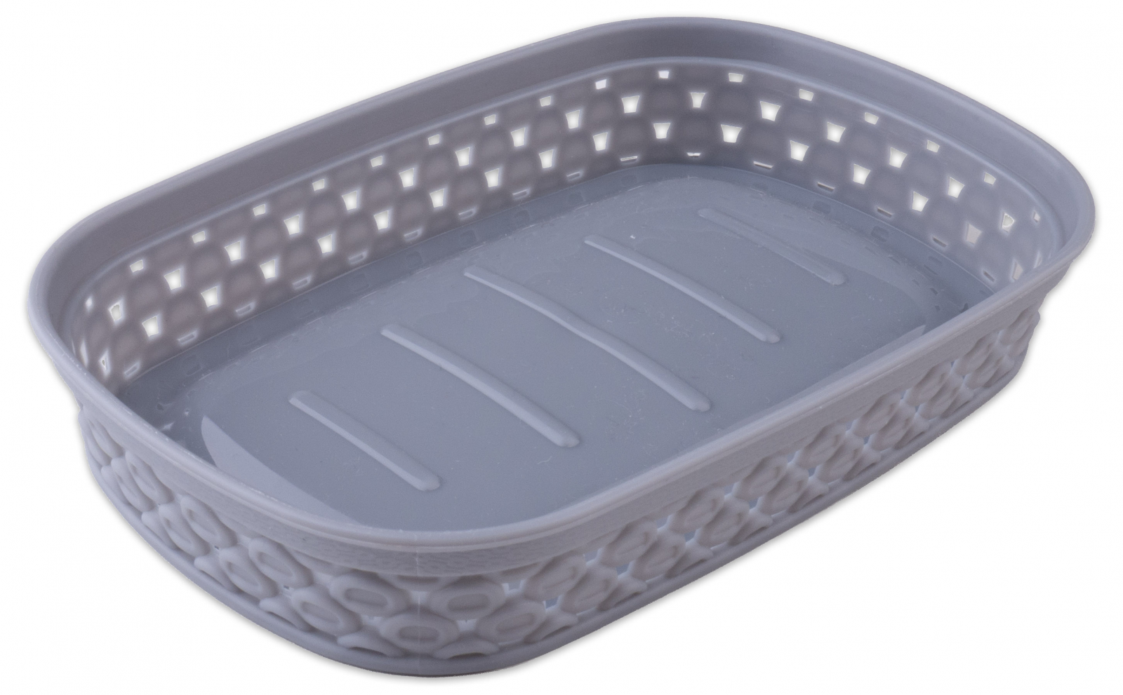 Plastová podložka na mýdlo, rozměr 15 x 9,5 x 2,5 cm. Barva šedá.
