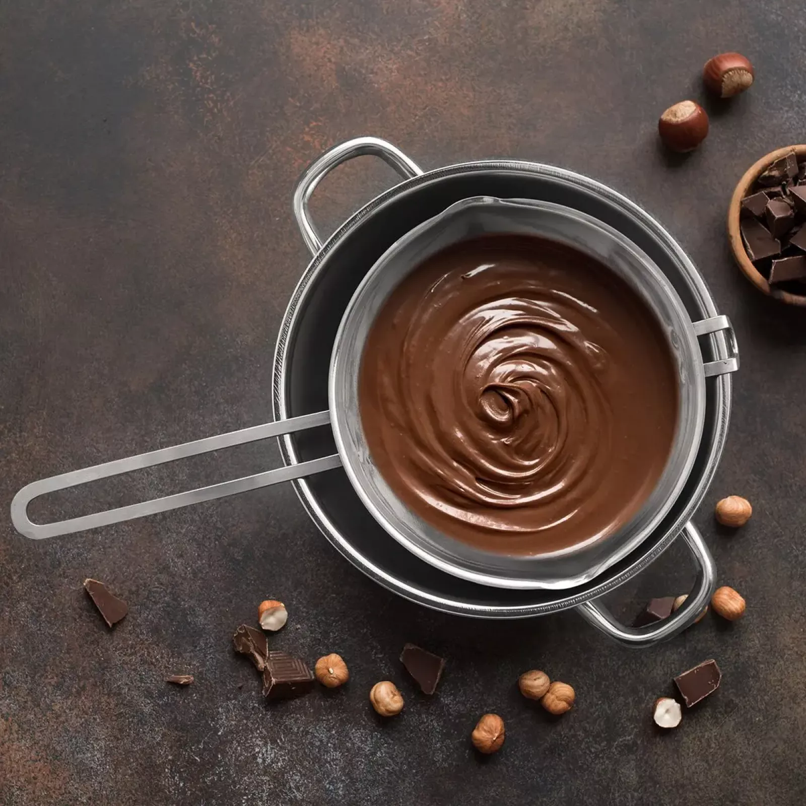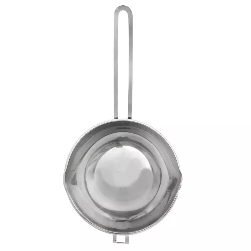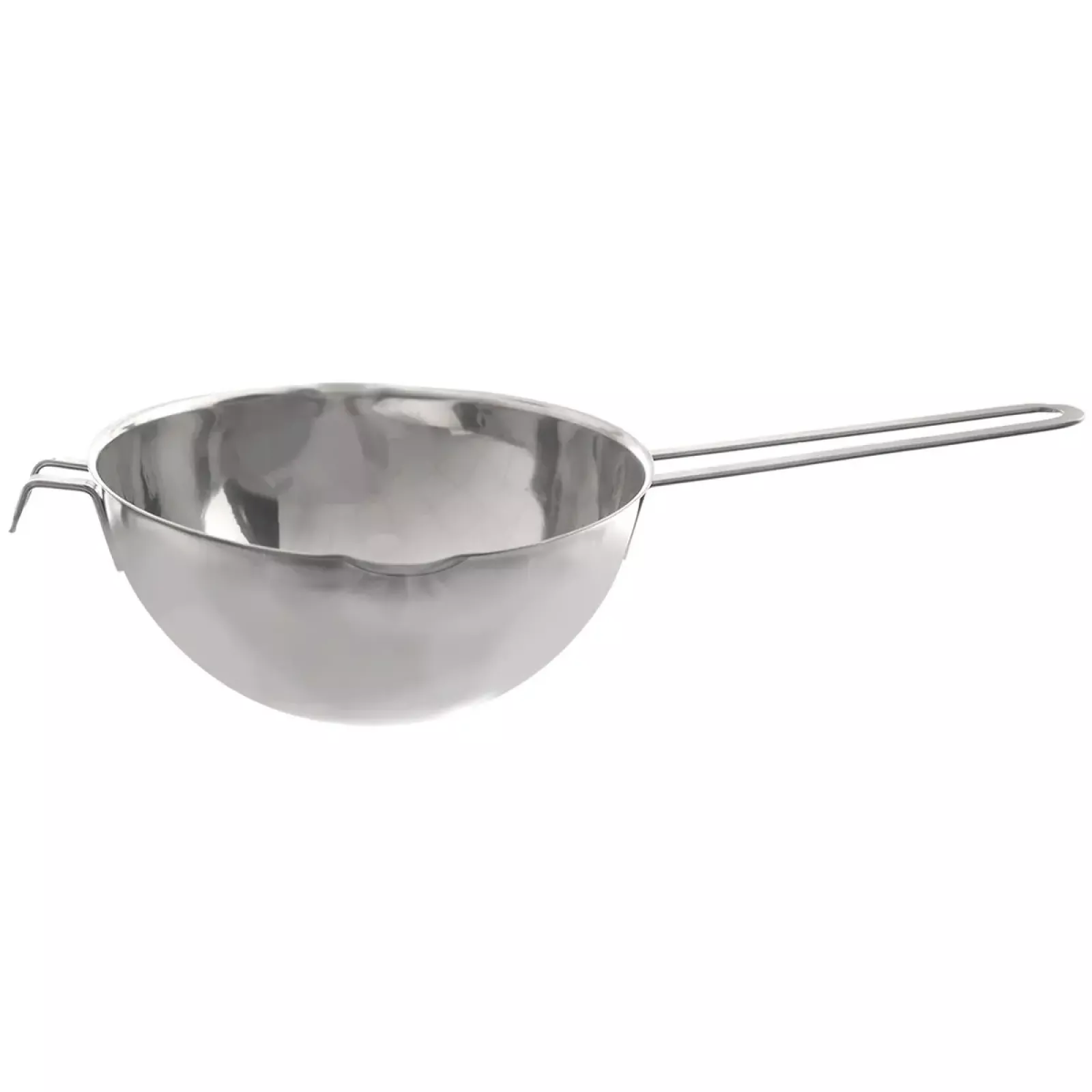 Miska na rozpouštění másla, čokolády a polevy, k přípravě krémů a omáček v páře nad vodní lázní nebo přímo ve vodní lázni. Usnadní Vám práci při přípravě krému a jiných dobrot. Dvě výlevky pro snadné vylévání. Rukojeť i ouško pro pohodlné a bezpečné umístění na hrnec. Materiál: k celý popisvalitní nerez. Rozměry: pr. 17,5 cm (vnitřní), vnější cca 18 cm, délka 35 cm, hloubka 8 cm, objem 1,2l.