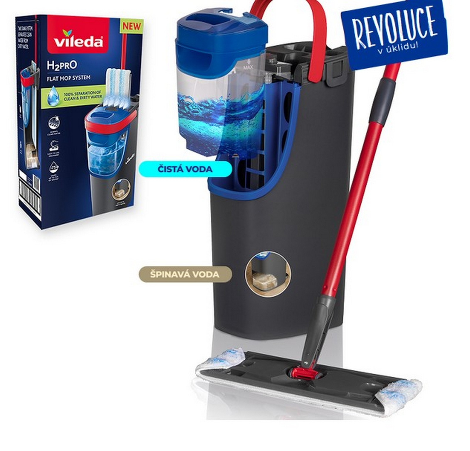 Zažijte revoluční systém plochého mopu H₂prO, který díky 100% oddělení čisté a špinavé vody, technologii šetřící vodu a pokročilým mikrovláknům zajistí dokonale čisté podlahy a efektivní úklid.