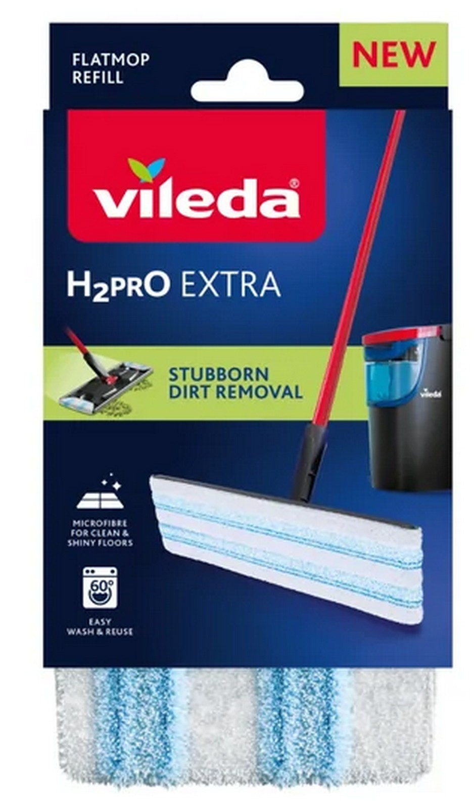 Náhrada z mikrovláklna k plochému mopu H2Pro zajišťuje až dvakrát delší čistotu povrchu bez šmouh, vhorná pro všechny typy tvrdých podlah. Praktický suchý zip umožňuje rychlé a snadné připevnění i sejmutí náhrady. Opakované použití - pratelná v pračce.