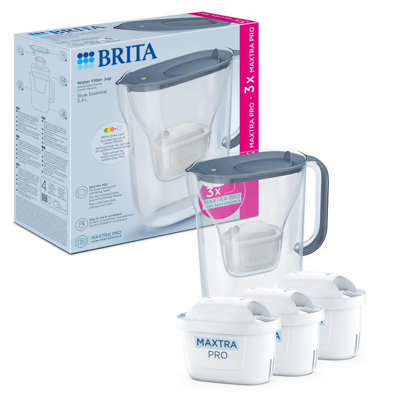 Filtrační konvice Brita Style Essential s filtrem Maxtra Pro Pure Performance odstraňuje z vody chlor, nečistoty a některé nežádoucí látky, a zároveň si zachovává prospěšné minerály, takže každá sklenice je osvěžující a chutná. Odklopné víko pro plnění jednou rukou, praktická kry celý popistka nálevky a tvar vhodný do dveří chladničky. Objem vody celkově 2,4?l, z toho 1,4?l filtrované vody. Konvici lze mýt v myčce (kromě LED indikátoru Smart Light). Filtr Maxtra Pro Pure Performance účinně odstraňuje chlor, některé těžké kovy a nežádoucí látky, takže voda má lepší chuť a vůni. Ideální pro kohoutkovou vodu s výraznou chutí nebo zápachem, například při vaření, přípravě čaje nebo kávy. Dvě mimořádně jemné filtrační síťky zadržují i ty nejmenší částice z potrubí. Každá filtrační kazeta nahradí až 150 jednorázových plastových lahví a obal filtru je z 50?% z bioplastu. Doporučená výměna filtru každé 4 týdny nebo po přefiltrování 150?l vody. Elektronický ukazatel dává zavčas vědět, kdy je potřeba výměna