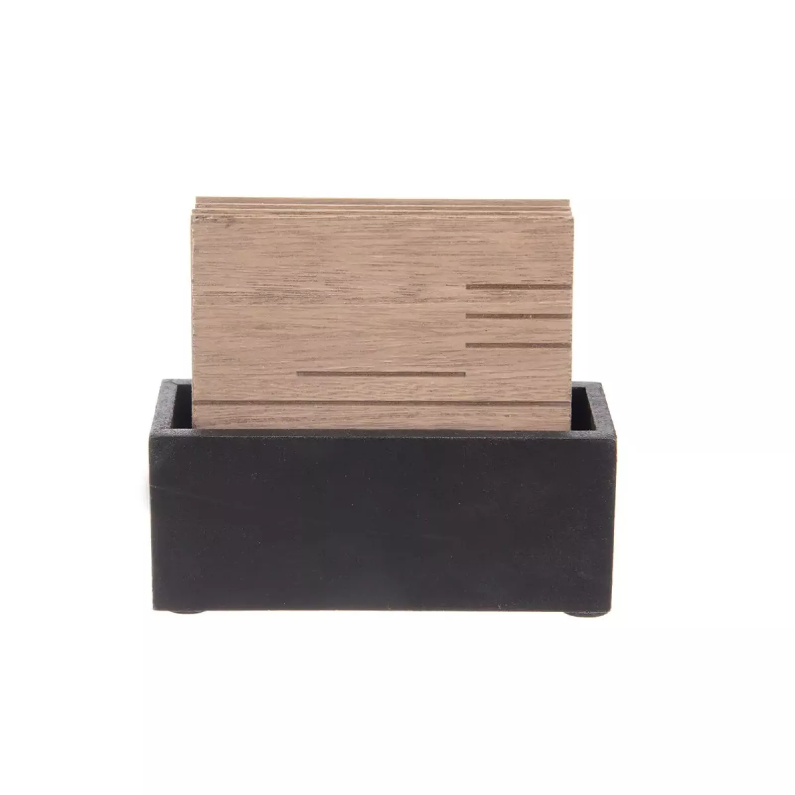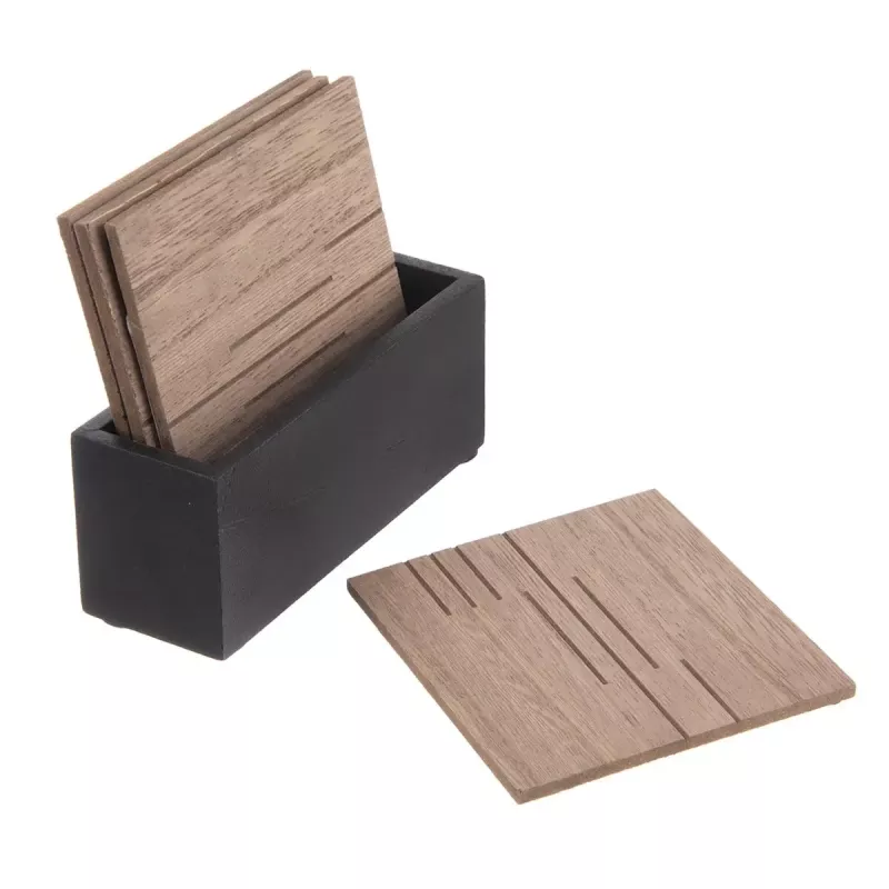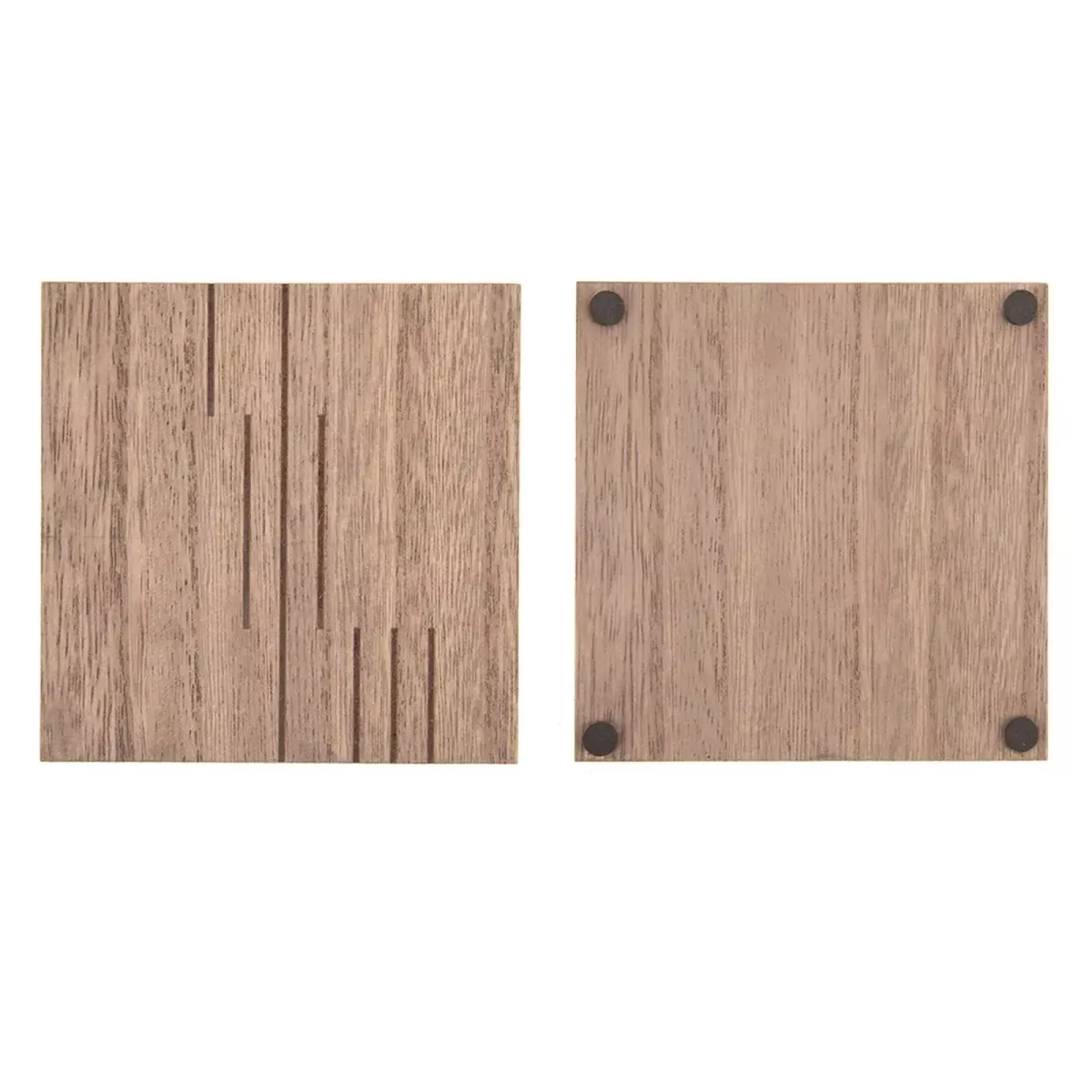 Podtácek z kolekce LINE bude skvělý doplněk prostřeného stolu a ochrání ho před kolečky od sklenic a hrnků. Vypadá velmi stylově. Sada 4 ks ve stojanu. Materiál: dřevovláknitá deska MDF, silikon (protiskluzové podložky). Rozměry: 10x10x0,5 cm. Nemáčejte, pouze otírejte vlhkým had celý popisříkem. Není vhodný do myčky.