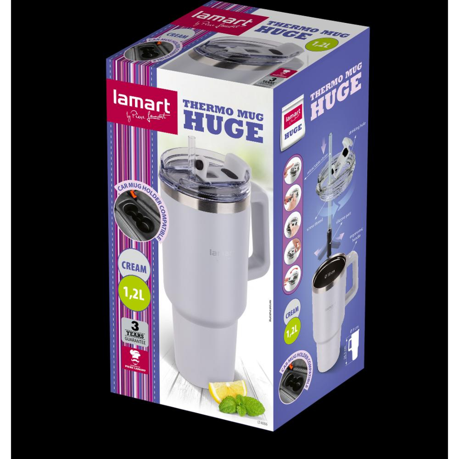 Termohrnek vyrobený z nerezové oceli, který udrží nápoje teplé nebo studené po dlouhou dobu. Vyrobený z nerezové oceli, který udrží nápoje teplé nebo studené po dlouhou dobu. Objem 1,2 l. Průměr 10 cm. Výška 25,5 cm. Ergonomická rukojeť a praktické brčko uvnitř hrnku, které lze s celý popisnadno zasunout, když se nepoužívá. Nápoje lze z hrnku konzumovat nejen přes brčko, ale i zavírací otvor ve víčku. Umožňuje pohodlné přenášení teplého nebo studeného nápoje.