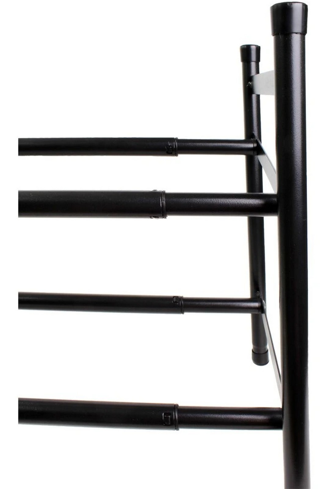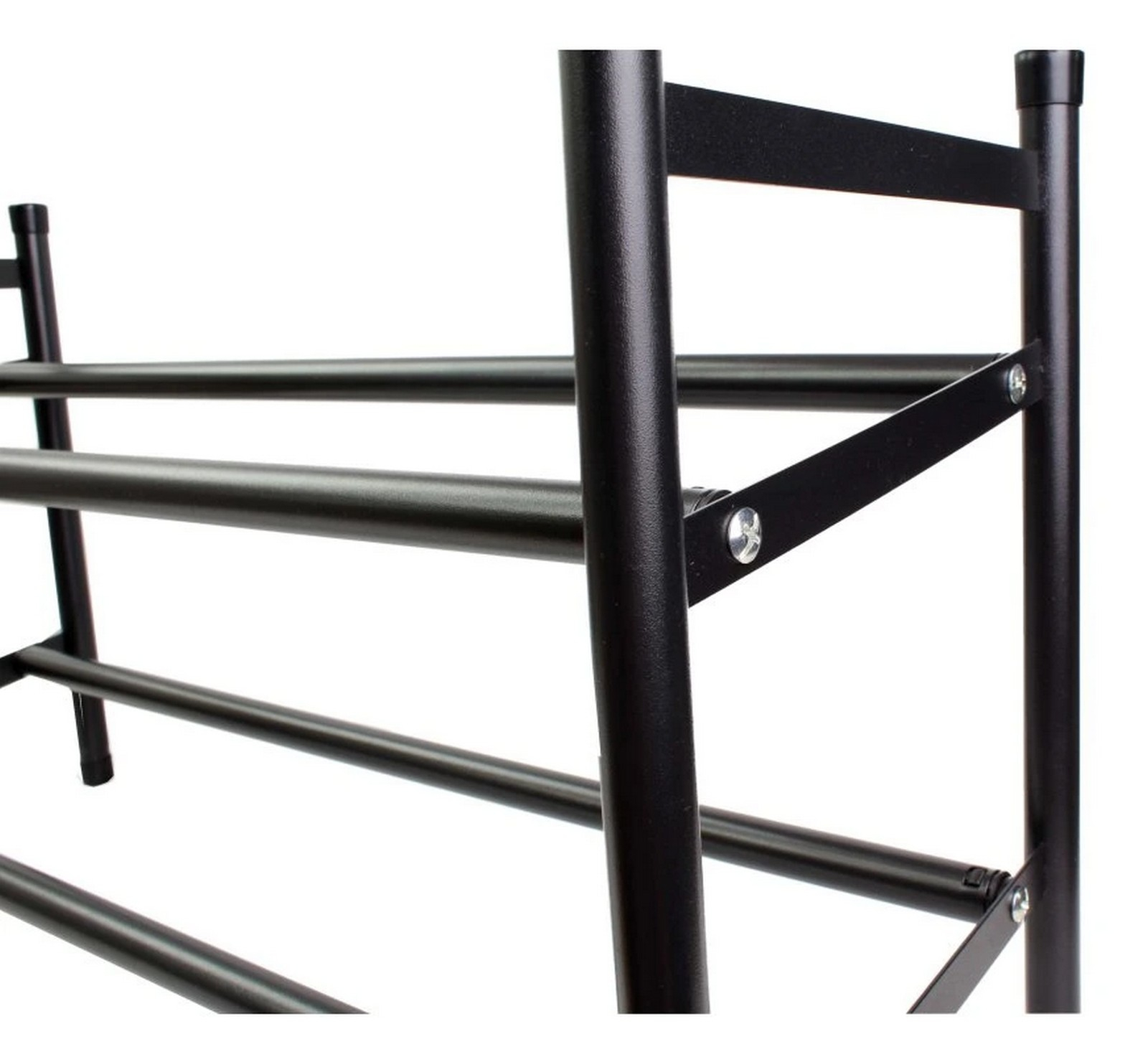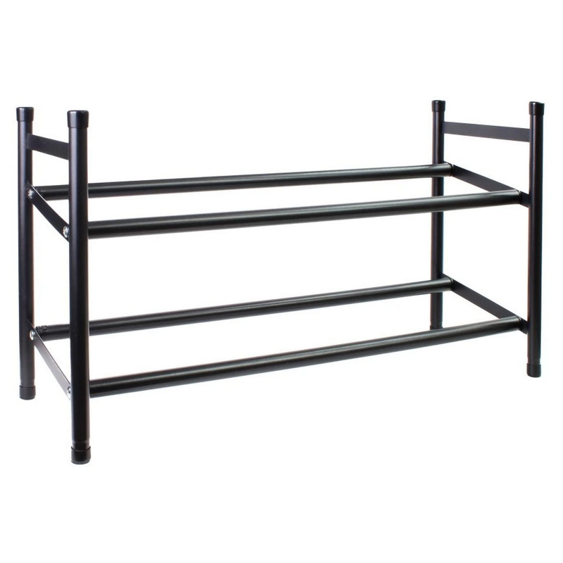 Kovový teleskopický botník až na 12 párů bot, 2 patra. Nastavení šířky 63 - 110 cm, výška 34,5 cm. Barva černá.