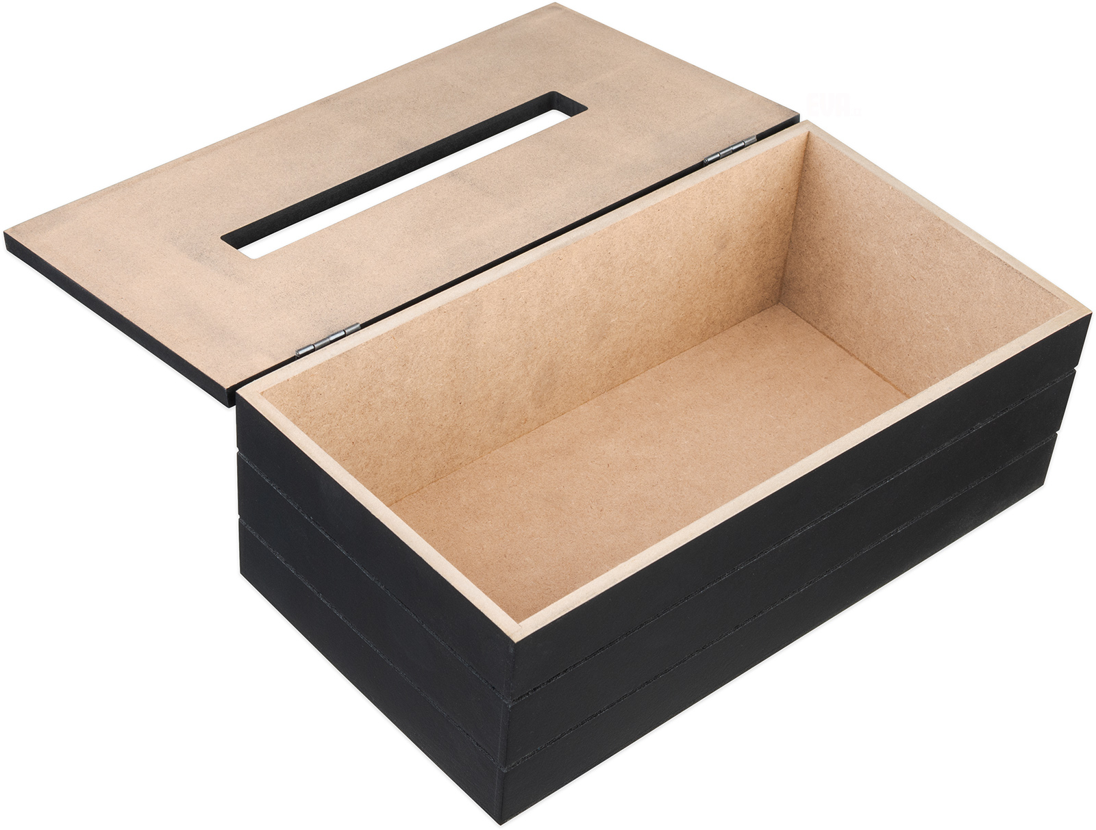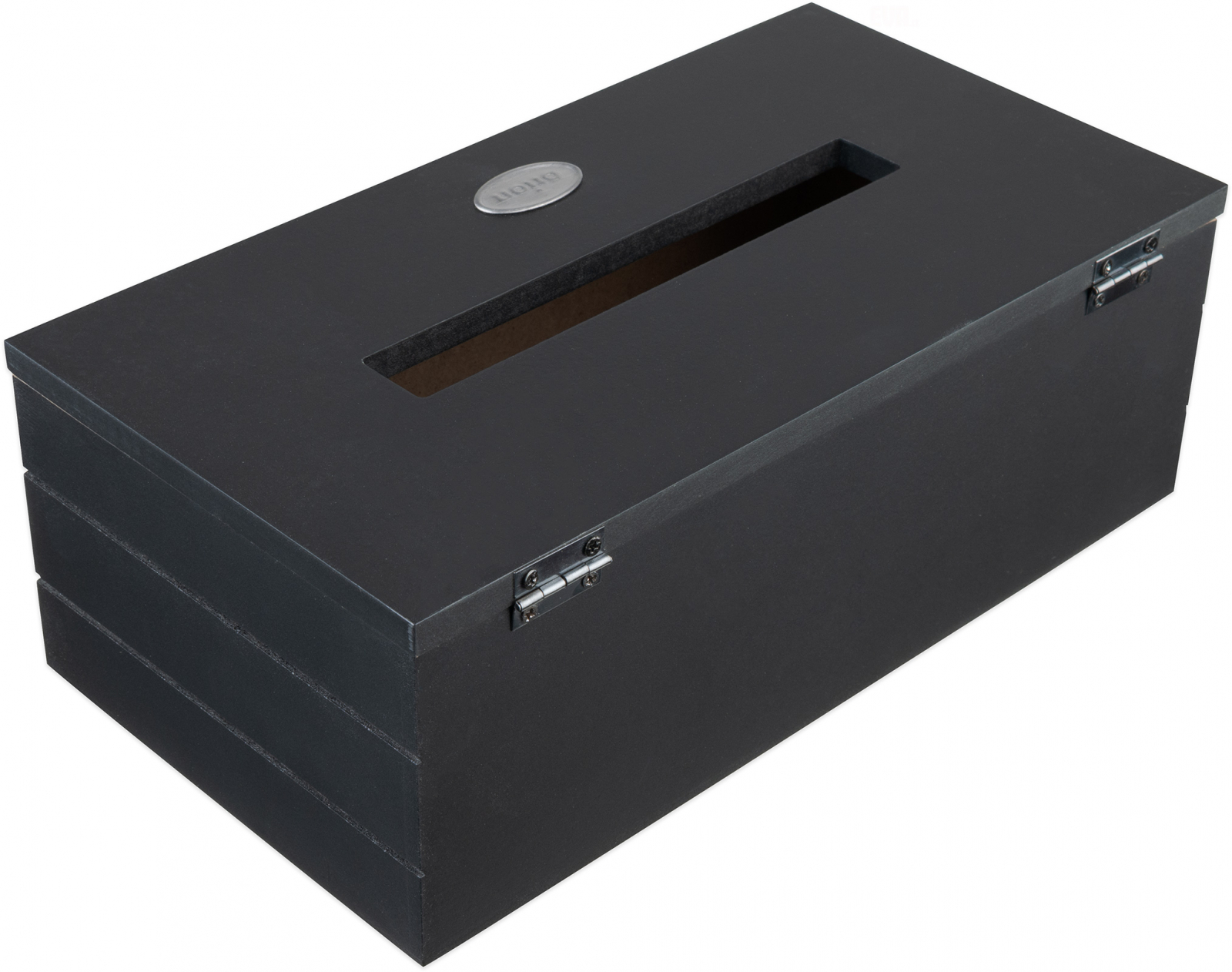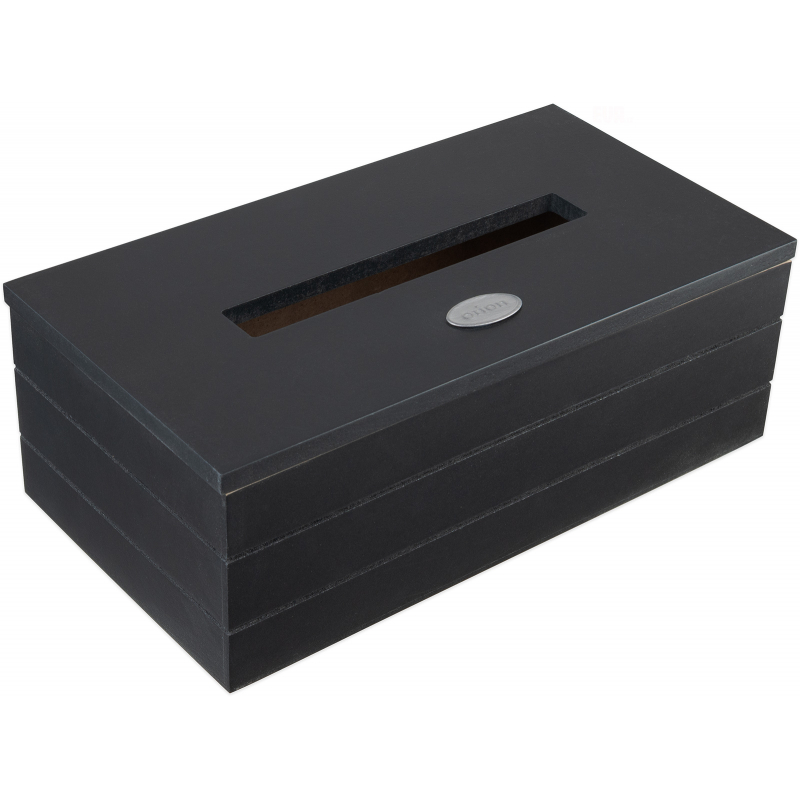 Dekorativní box na papírové kapesníky v černémodstínu, který schová papírovou krabičku a skvěle doplní interiér. Vypadá velmi stylově. Materiál: dřevovláknitá deska MDF, kov. Rozměry: 25x13,5x9 cm.