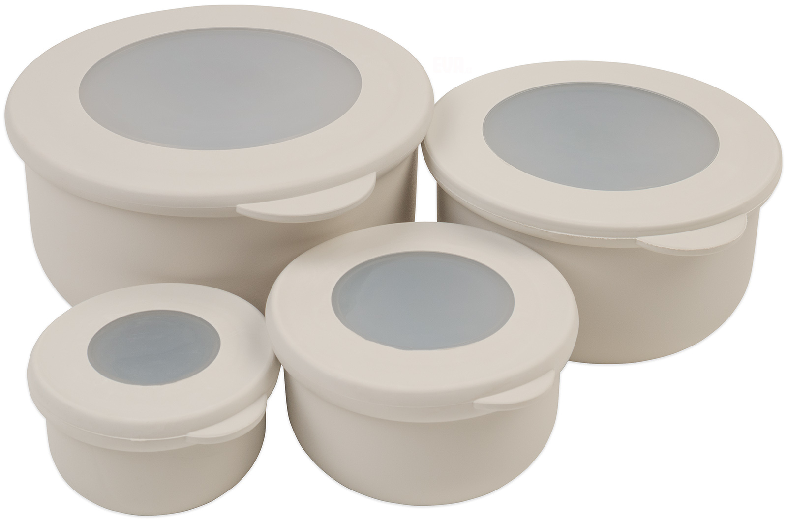 Sada 4 plastových dóz o objemech 100 ml, 250 ml, 500 a 900 ml. Rozměry misek: průměr 7 cm, výška 4cm/průměr 9 cm, výška 5 cm,/průměr 11 cm, výška 6,5 cm/ výška 14,5 cm, výška 7,5 cm. Vhodné pro skladování potravin. Vyrobeno z plastu se silikonovým těsněním víčka. Lze použít v chl celý popisadničce i mrazničce. Vhodné do myčky nádobí a pro ohřívání v mikrovlnce (bez víčka).