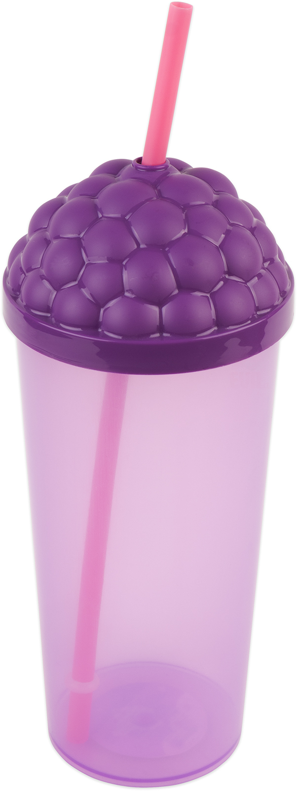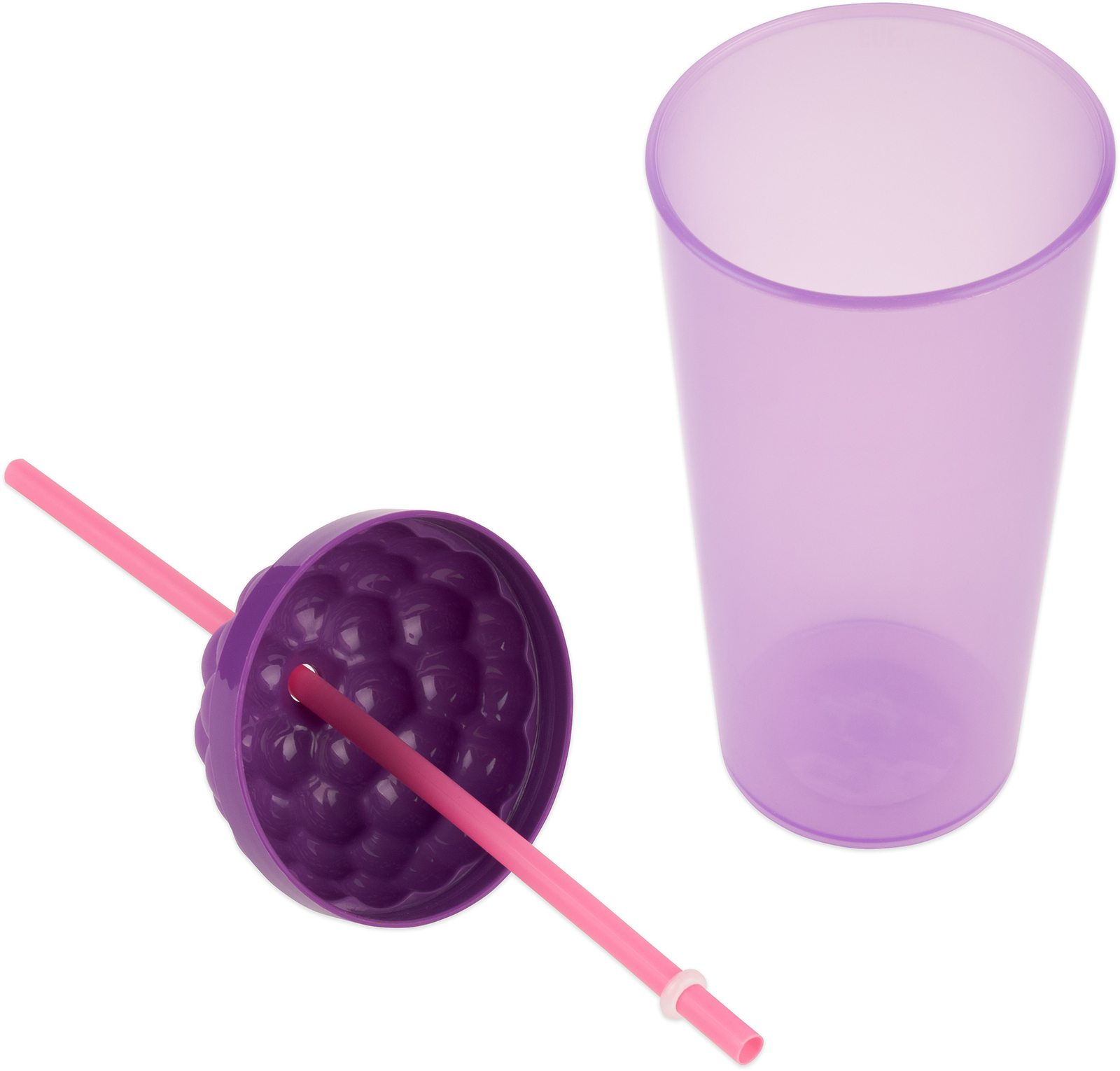 Kelímek s víčkem a brčkem o objemu 0,70 l, průměr 8,9 cm, výška 22cm (včetně víčka) . Materiál plast. Barva fialová.