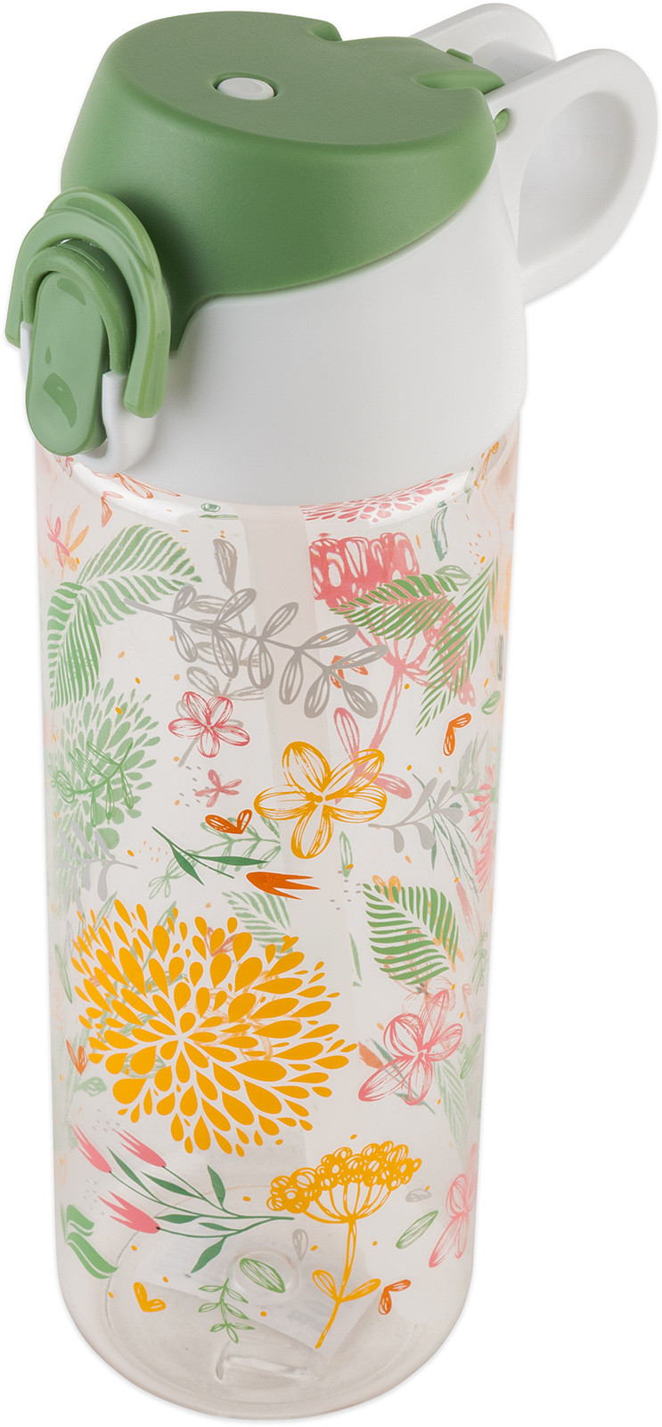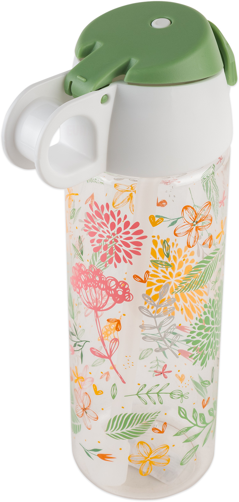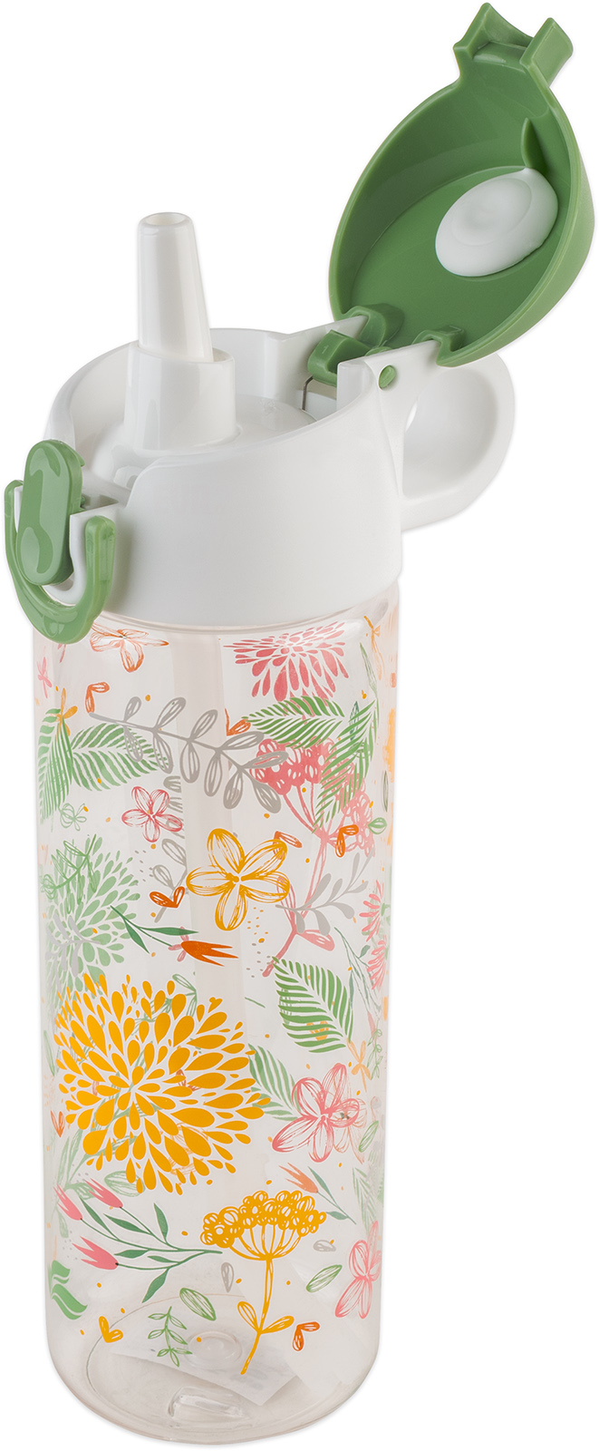 Plastová láhev s brčkem a víčkem TORO. Objem 750ml. Výška 24cm. Průměr 7,3cm. Šířka včetně ucha 11,5cm. Šroubovací víčko. Otevření - knoflíkem v přední části (lze uzavřít zaklapávacím systémem).