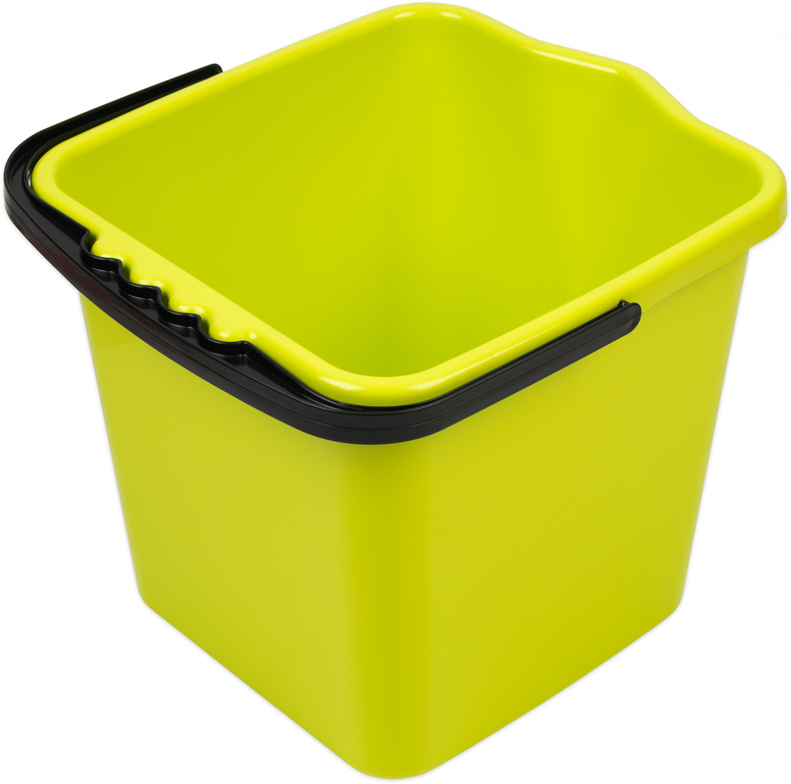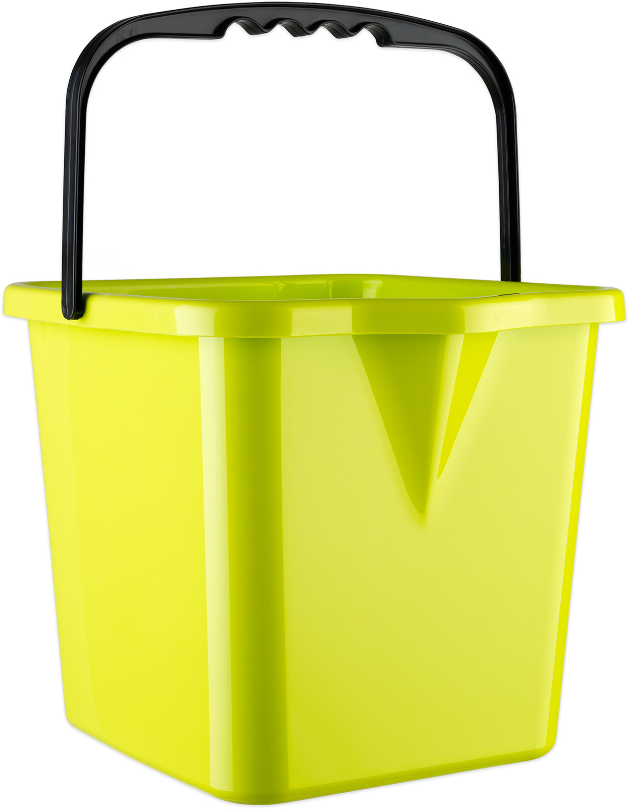 Hranatý kbelík s výlevkou z pevného plastu s uchem a odměrnou stupnicí, objem 12 l, rozměry : 29 x 26 x 24 cm. Barva zelená.