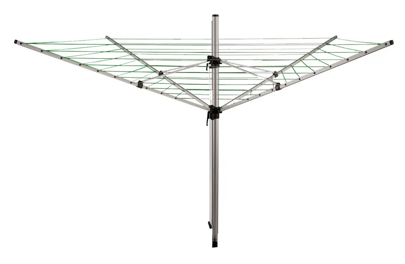 4 ramenný venkovní sušák, materiál práškovaná ocel, délka šňůr 50 m, kapacita 5 praček prádla, max. váha prádla k zavěšení 30 kg, rozměry: 170 x 170 x 183 cm, průměr tyče 3,2 cm, včetně plastové držáku do země. Rozměr složeného sušáku : 12 x 12 x 142 cm.