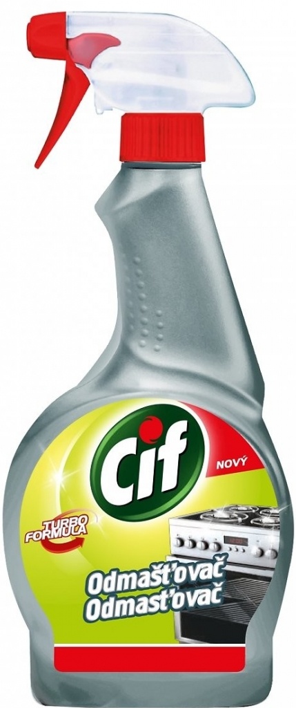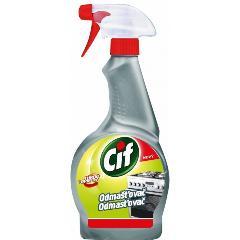 Čistící prostředek CIF Odmašťovač sprej 500 ml, účinně odstraňuje mastnotu a ostatní odolné nečistoty v kuchyni.