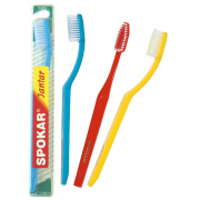 Měkký zubní kartáček SPOKAR 3413/M Jantar, rovný zástřih, zúžená hlava, mix barev dle skladové dostupnosti.
