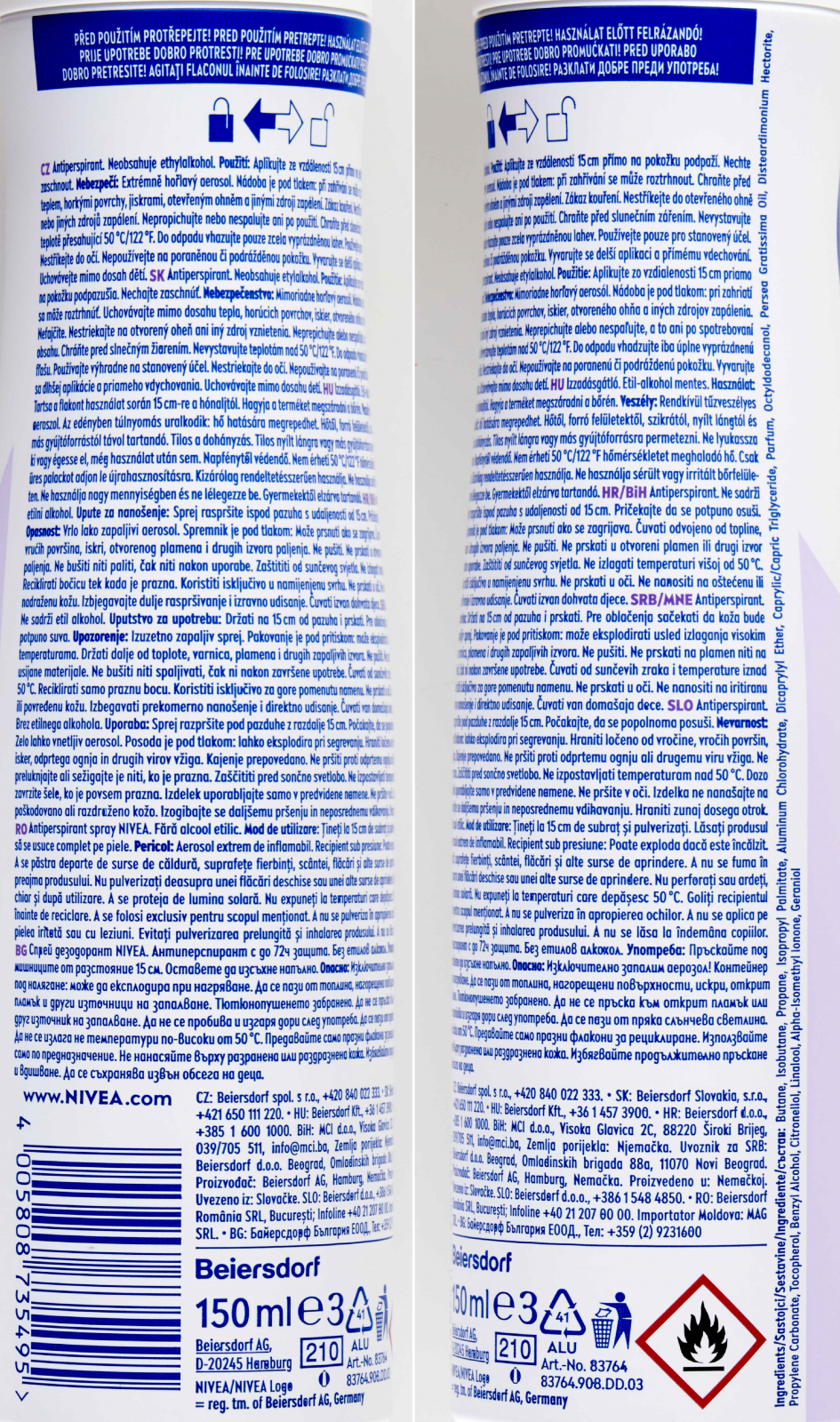 Bezpečnostní varování: Nebezpečí: Extrémně hořlavý aerosol. Nádoba je pod tlakem: při zahřívání se může roztrhnout. Chraňte před teplem, horkými povrchy, jiskrami, otevřeným plamenem a jinými zdroji zapálení. Zákaz kouření. Nestříkejte do otevřeného ohně nebo jiných zdrojů zapálení. Nepropichujte nebo nespalujte ani po použití. Chraňte před slunečním zářením. Nevystavujte teplotě přesahující 50 °C/122 °F. Do odpadu vhazujte pouze zcela vyprázdněnou lahev. Používejte pouze pro stanovený účel. Nestříkejte do očí. Nepoužívejte na poraněnou či podrážděnou pokožku. Uchovávejte mimo dosah dětí. Nevdechujte.