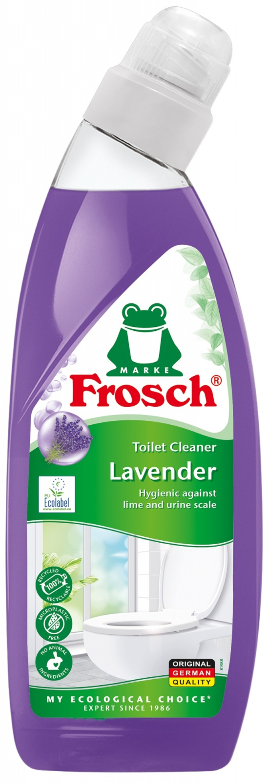 Obsah všech čisticích a pečujících prostředků Frosch je v přírodě snadno biologicky odbouratelný a nezanechává po sobě ekologickou stopu. Obaly jsou vyrobeny ze 100% recyklovaného a opětovně recyklovatelného materiálu tak, aby nevznikal plastový odpad.