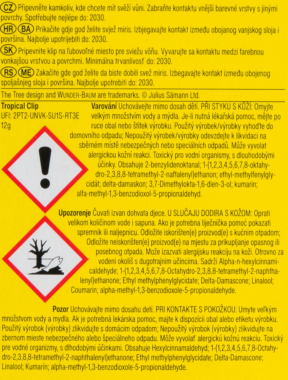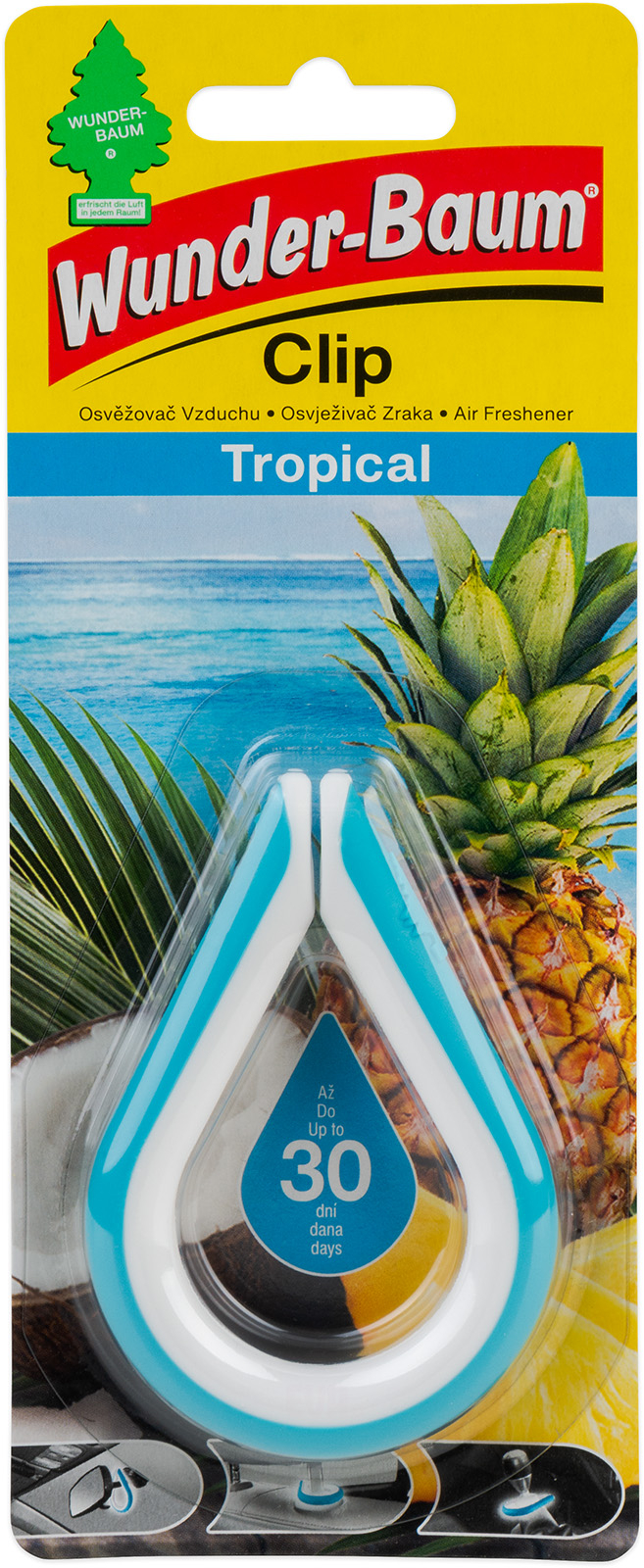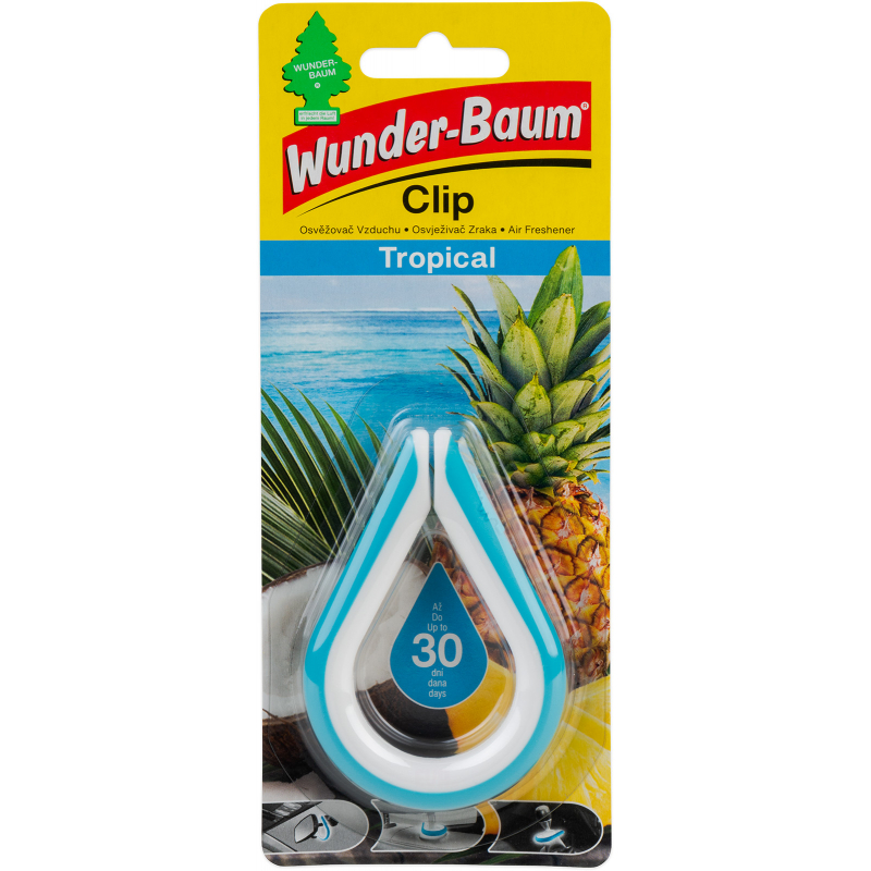 WUNDER-BAUM Clip Tropical, osvěžovač vzduchu, předností Clipu je atraktivní design a široká řada možností umístění (zpětné zrcátko, řadicí páka, opěrka hlavy, ruční brzda, a jiné), udržujte mimo dosah dětí.