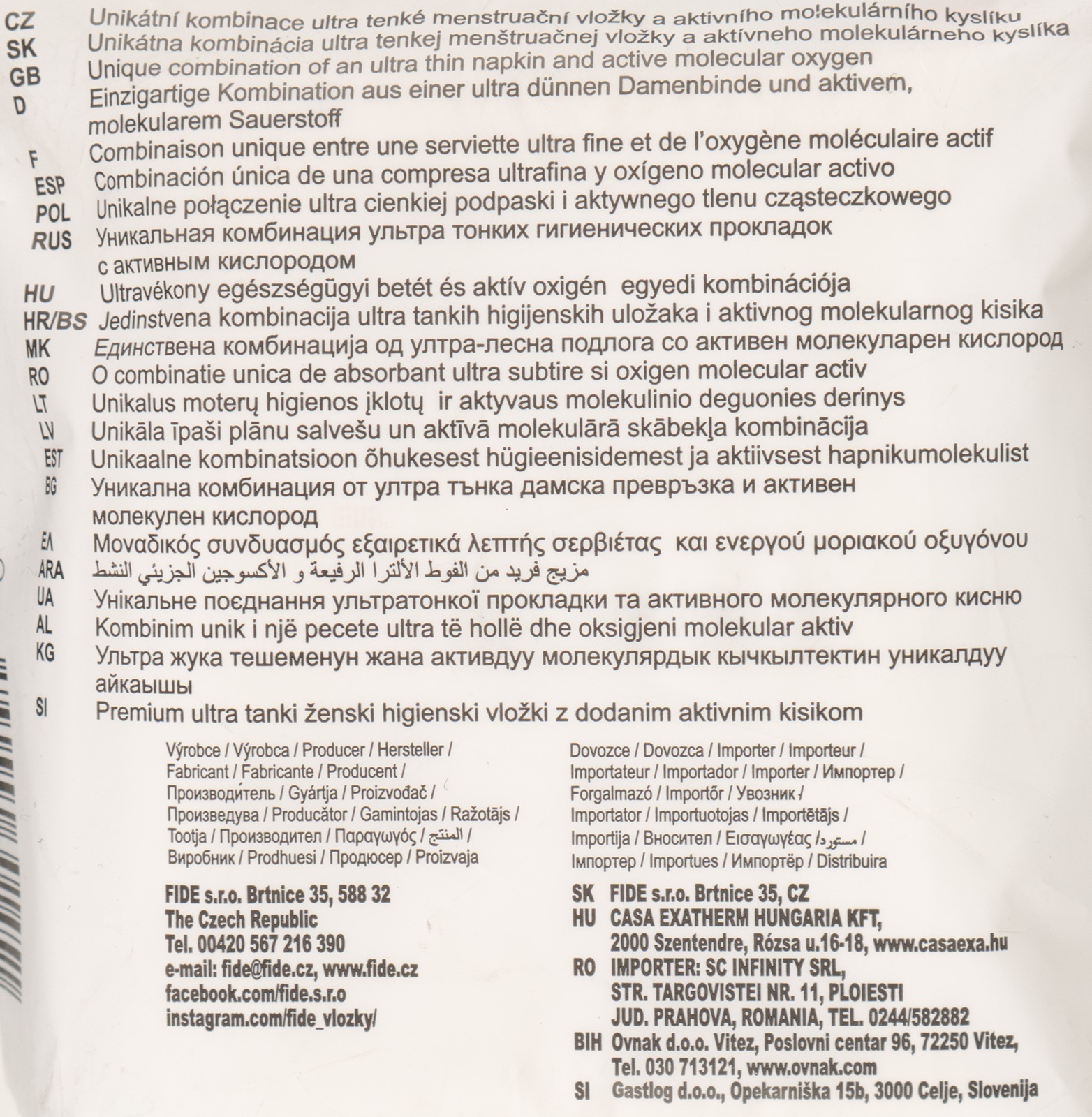 Vložky CARIN Antiseptic Ultra 9ks, ultra tenké menstruační vložky obsahují aktivní kyslík, který šetrně desinfikuje vložku a omezuje nepříjemný zápach neutralizací aromatických sloučenin, vzhledem k vynikajícím absorpčním vlastnostem jsou vhodné nejen při mentruaci, ale i při leh celý popiské inkontinenci.