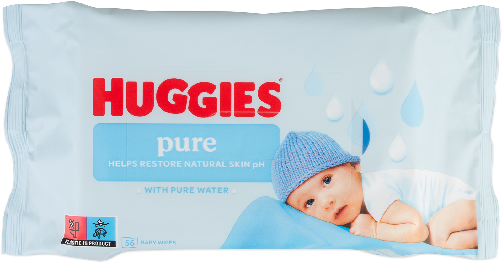 HUGGIES Pure 56 ks. Jsou vhodné pro každou příležitost, nejen při přebalování Vašeho děťátka. Určené pro novorozence a děti s citlivou pokožkou. Čistí jemně, stejně jako vata a voda. Neobsahují žádny parfém či alkohol.