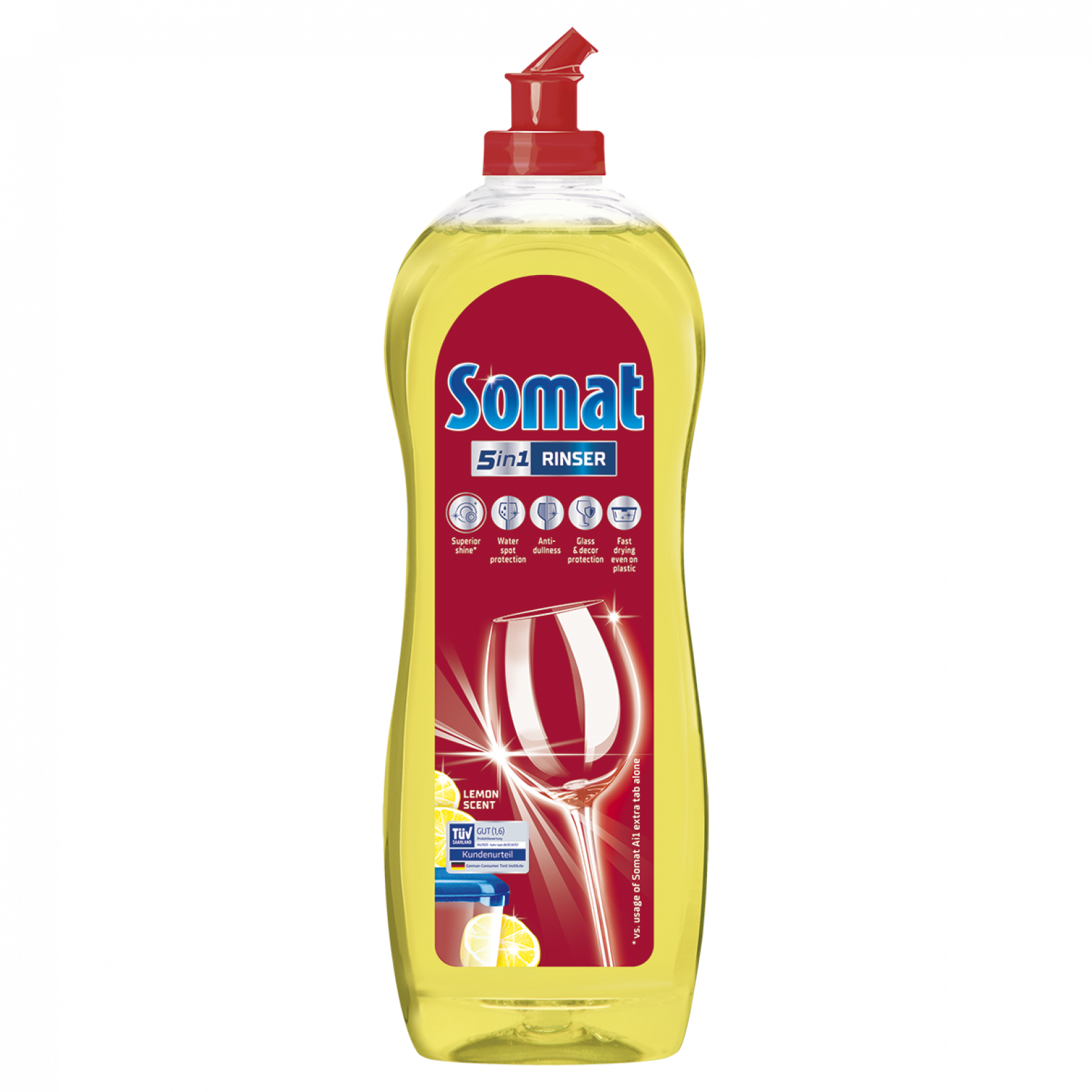 Vytváří na nádobí křišťálově jasný lesk, navíc odstraňuje zbytky, které mohou v myčce zůstat během mycího cyklu, přináší vysoký lesk beze skvrn a vápenatých usazenin, je speciálně vyvinutý pro ochranu skleněného nádobí, napomáhá rychlejšímu schnutí nádobí, změkčuje vodu, aby sték celý popisala rovnoměrně, a zabraňuje usazování nečistot na již umytém nádobí, s vůní citrónu.