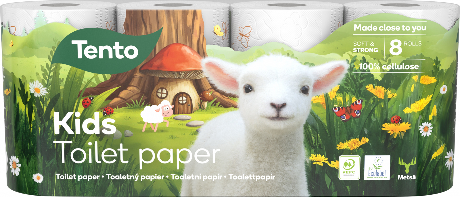 Tento Kids je vysoce kvalitní 3-vrstvý toaletní papír, 8 rolí, návin 18 m, rozměr útržku 12 x 9,5 cm, gramáž 3 x 15,5 g/m2. Jemný a příjemný na dotek. Díky toaletnímu papíru Tento bude hygiena a získávání správných hygienických návyků zábavou nejen pro děti, ale i dospělé.