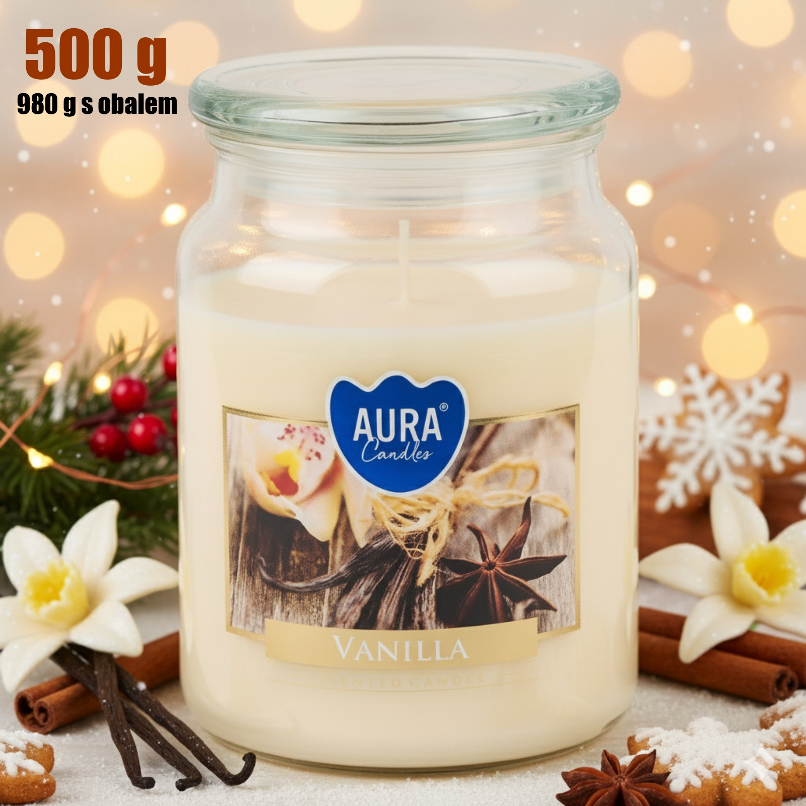 Vonná svíčka ve skle s vůní vanilky, maxi velikostí a extra dlouhou dobou hoření, která provoní celý byt či dům. Tato vůně se uvolňuje po celou dobu hoření svíčky a navodí příjemnou atmosféru, pocit klidu a pohody. Svíčka je vkusně laděna do barev, které jsou typické pro danou vů celý popisni. Díky skleničce, ve které je svíčka umístěna, bude sloužit jako krásná dekorace nebo jako milý dárek. Po vyhoření, lze skleničku, díky její velikosti, něčím naplnit a využívat ji i nadále. Doba hoření 100 hodin.