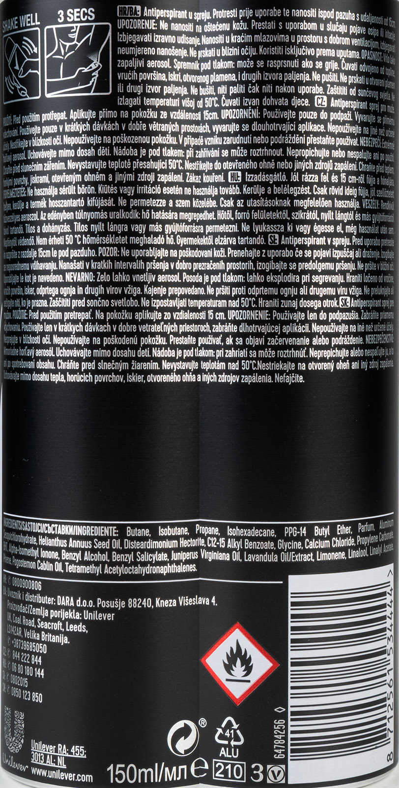 Bezpečnostní varování: Nebezpečí: Extrémně hořlavý aerosol. Nádoba je pod tlakem: při zahřívání se může roztrhnout. Chraňte před teplem, horkými povrchy, jiskrami, otevřeným plamenem a jinými zdroji zapálení. Zákaz kouření. Nestříkejte do otevřeného ohně nebo jiných zdrojů zapálení. Nepropichujte nebo nespalujte ani po použití. Chraňte před slunečním zářením. Nevystavujte teplotě přesahující 50°C/122°F. Do odpadu vhazujte pouze zcela vyprázdněnou lahev. Používejte pouze pro stanovený účel. Před použitím si přečtěte údaje na štítku. Používejte pouze v dobře větraných prostorách. Aplikujte pouze krátkými střiky. Nestříkejte do očí. Nepoužívejte na poraněnou či podrážděnou pokožku. Uchovávejte mimo dosah dětí. Nevdechujte.
