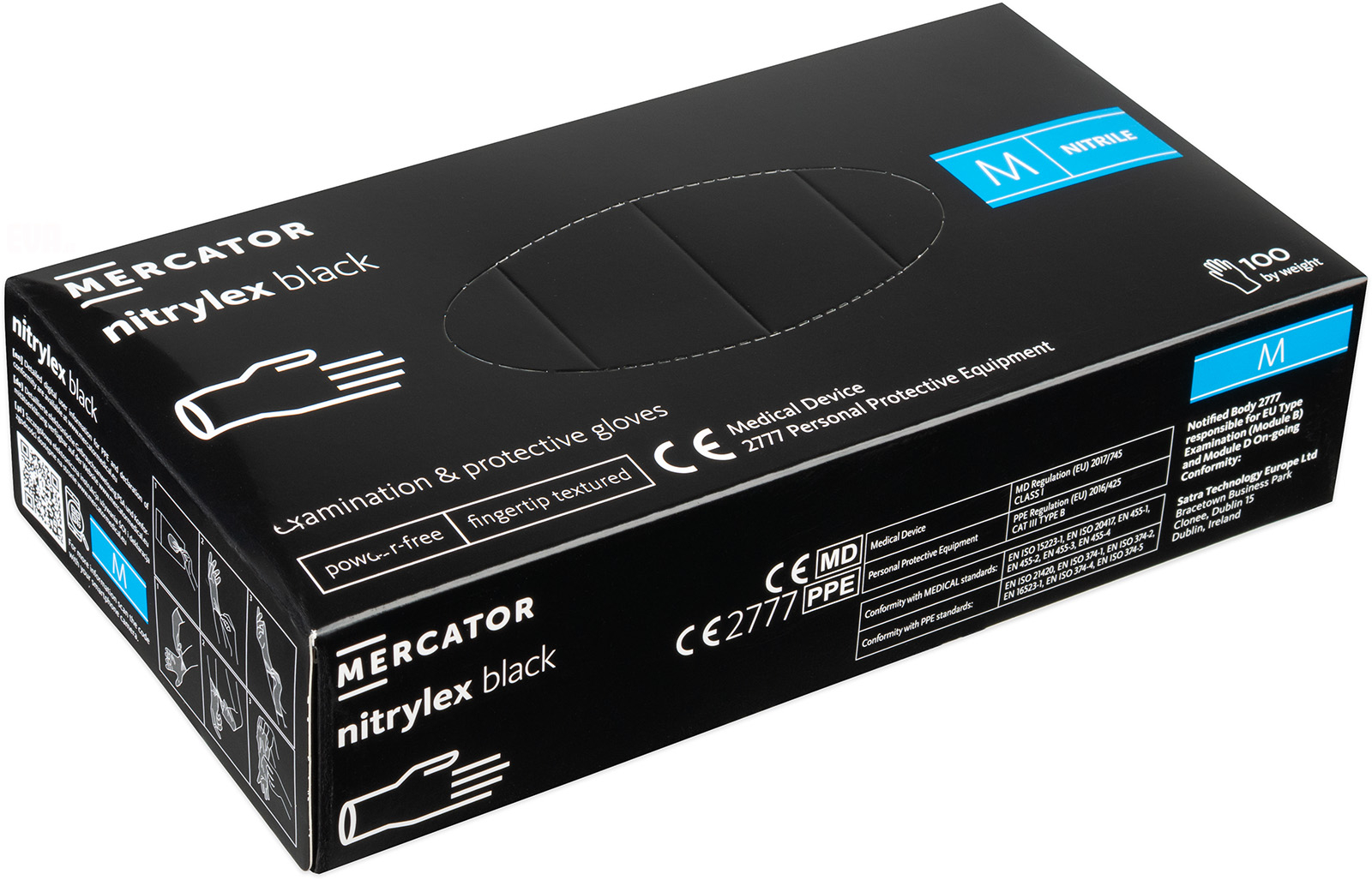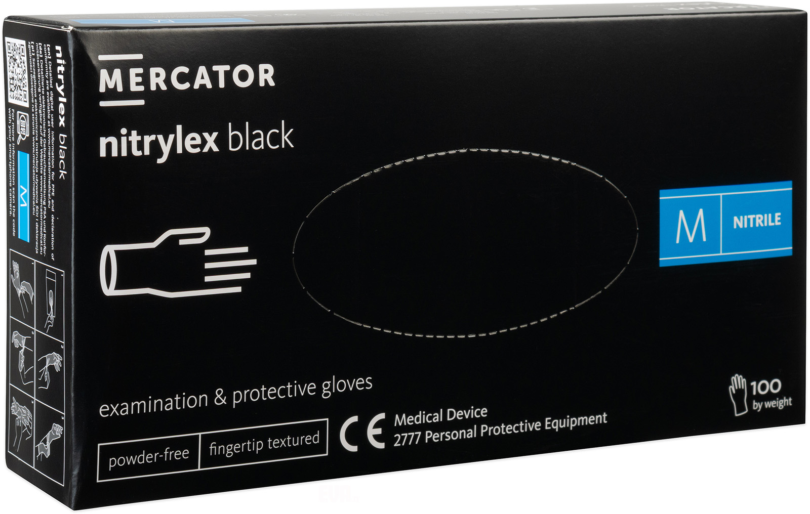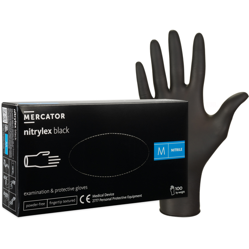 Rukavice nitril 100 ks M černé bez pudru Mercator