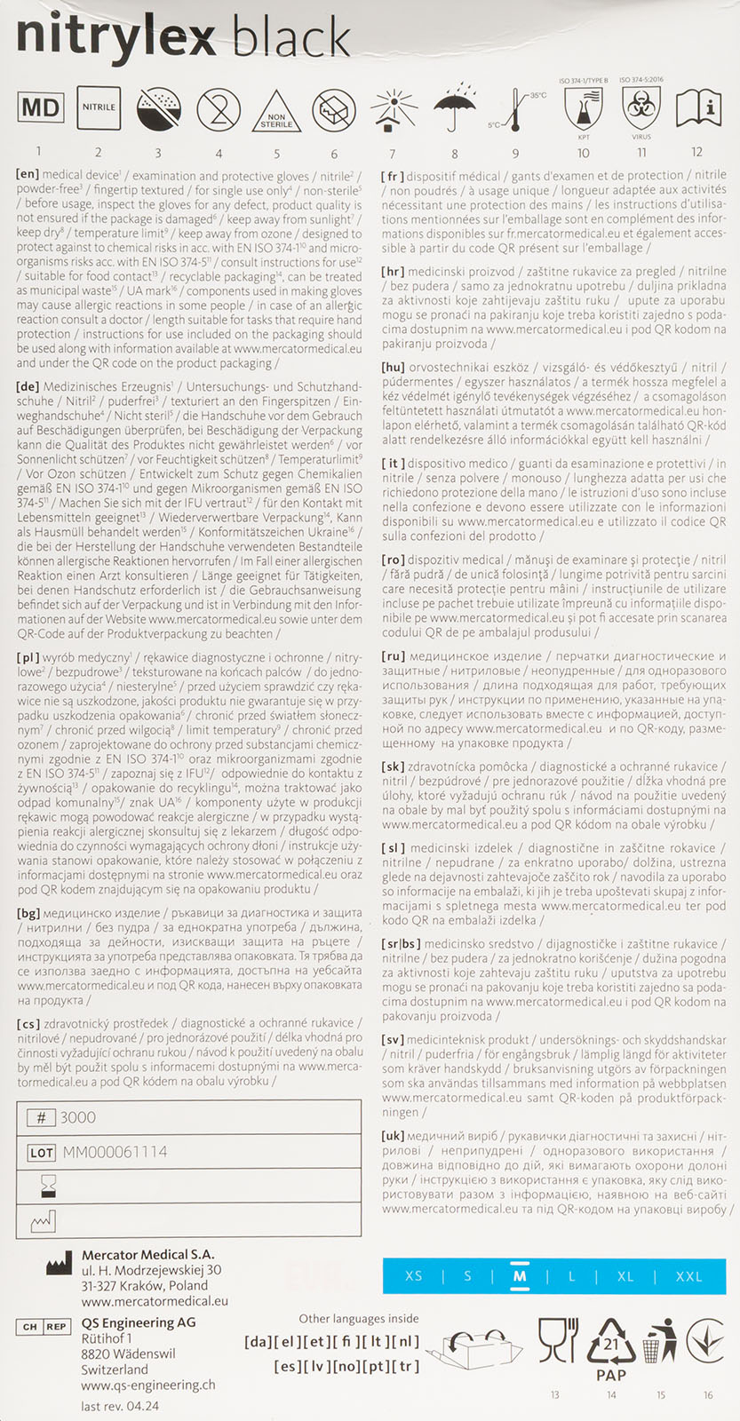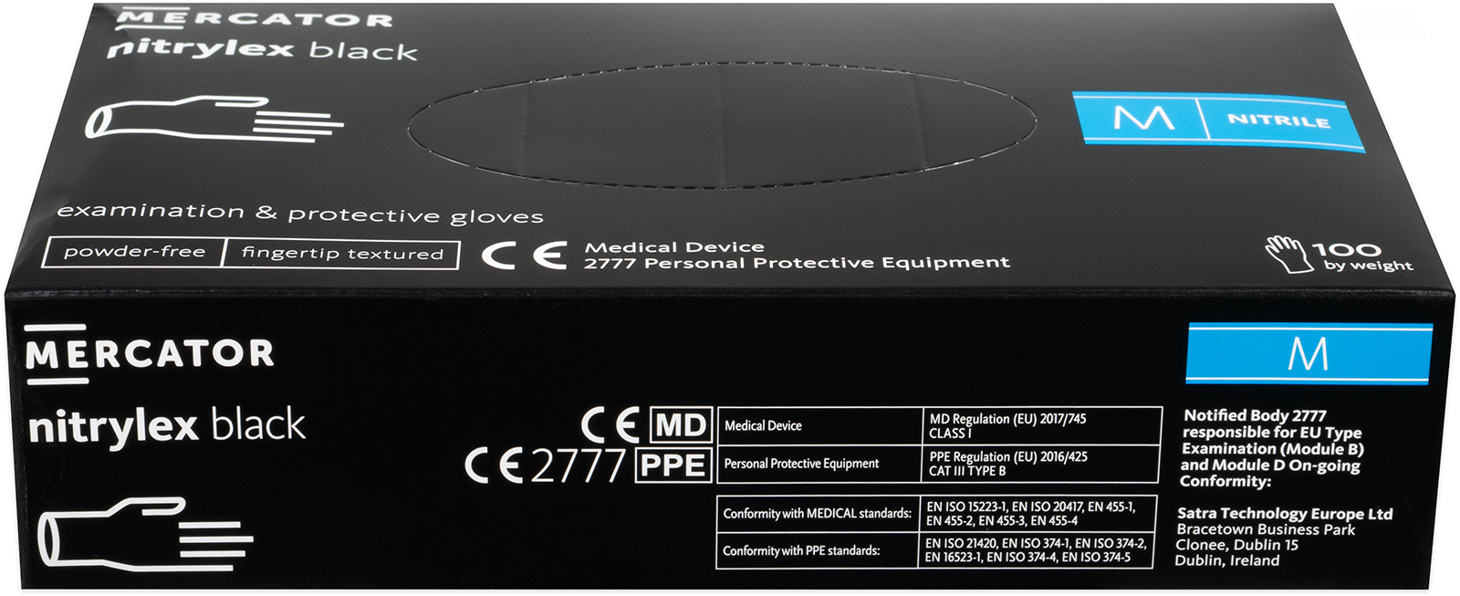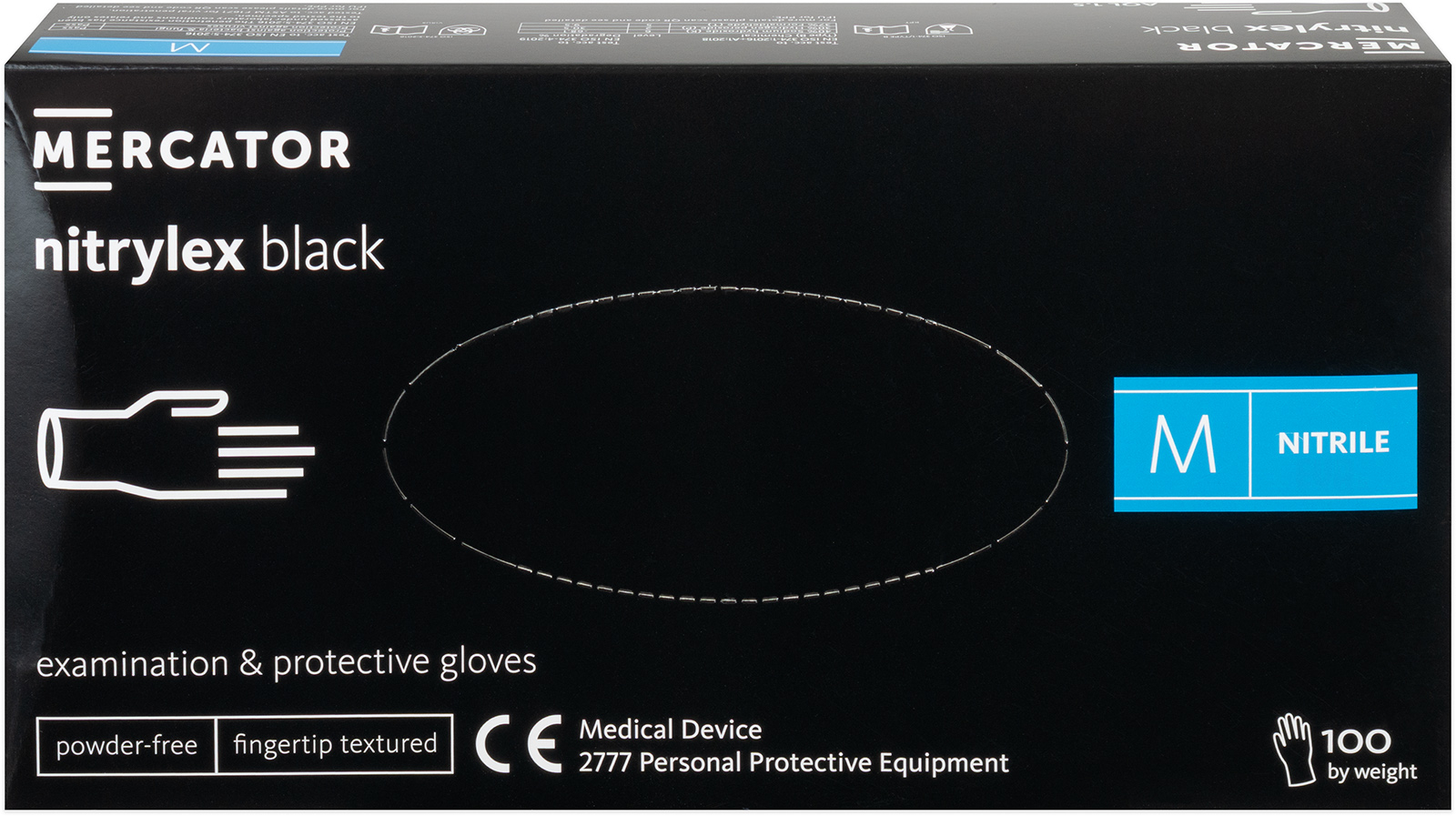 Rukavice nitril 100 ks M černé bez pudru Mercator