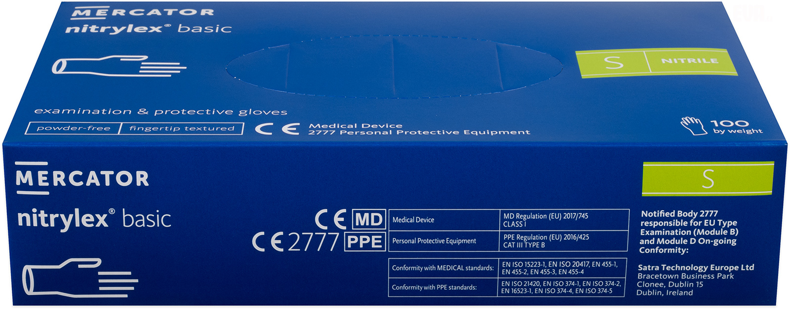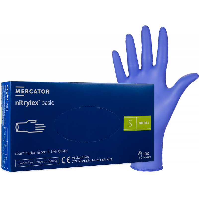 Rukavice nitril 100 ks S tmavě modré bez pudru Mercator Basic