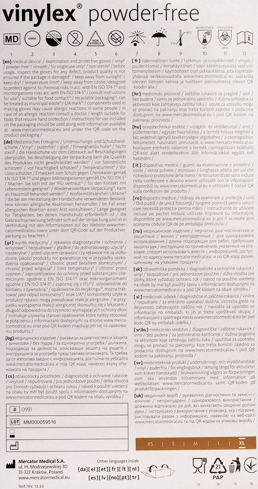 Rukavice vinyl 100 ks XL bez pudru Mercator Vinylex jednorázové