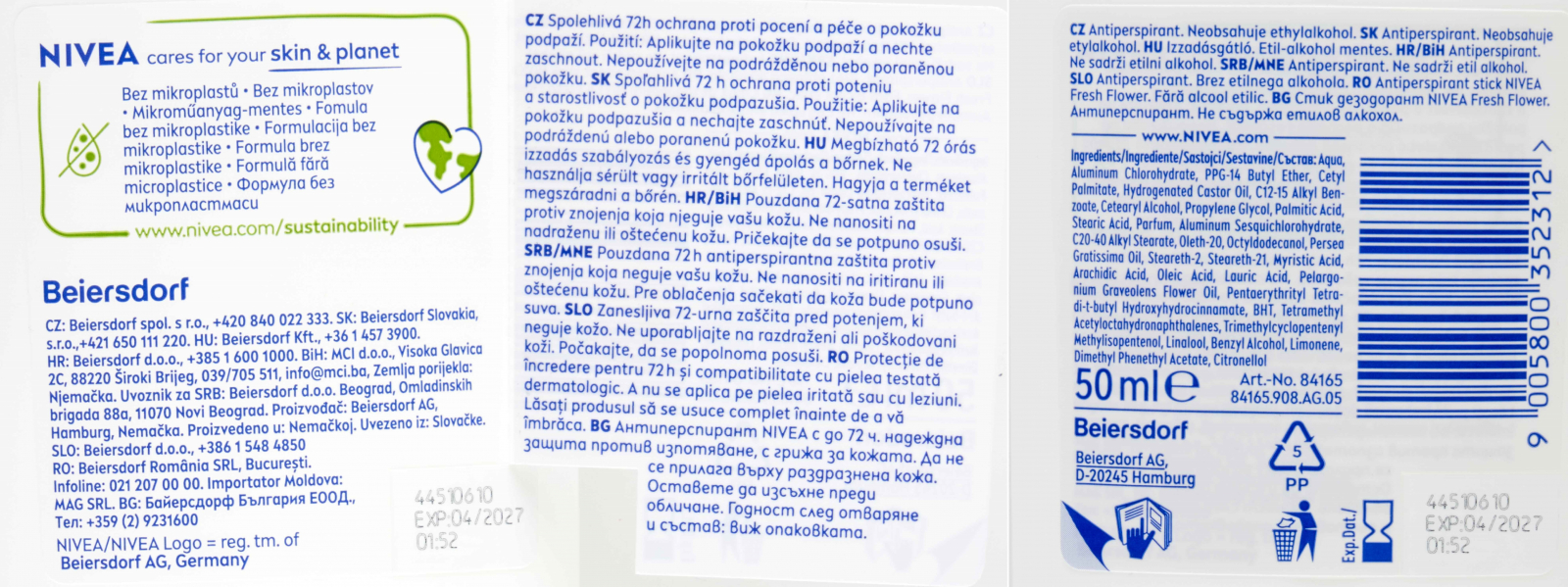 Inovovaný tuhý antiperspirant se svěží květinovou vůní, který před potem a zápachem chrání až 72 hodin pečuje o pokožku podpaží.