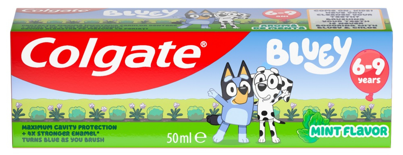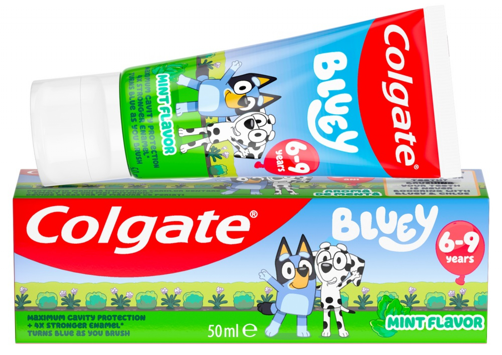 Dětská zubní pasta Colgate s mátovou příchutí 50 ml, vhodná pro děti od 6 let.