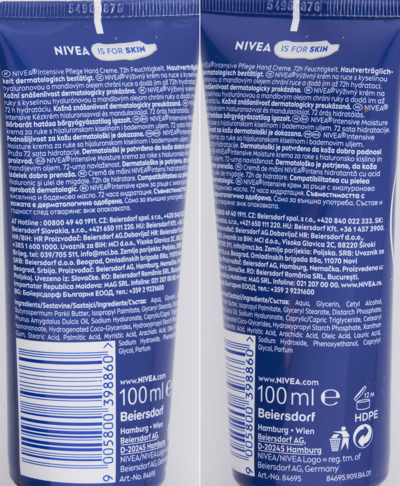 Výživný krém na ruce promění i suchou kůži v sametově hebkou pokožku. Bohaté veganské složení s přírodním mandlovým olejem, bambuckým máslem a typickou vůní krému NIVEA vaše ruce chrání, pečuje o ně a intenzivně je vyživuje až na 24 hodin. Vmasírujte krém do dlaní, hřbetů a prstů celý popis na rukou a pokožka se v mžiku zjemní.