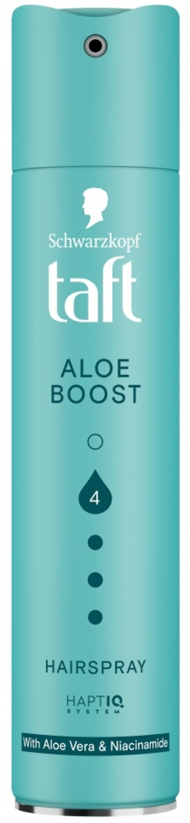 TAFT Aloe Boost lak na vlasy 250 ml – S aloe vera a niacinamidem, vhodný pro všechny typy vlasů.