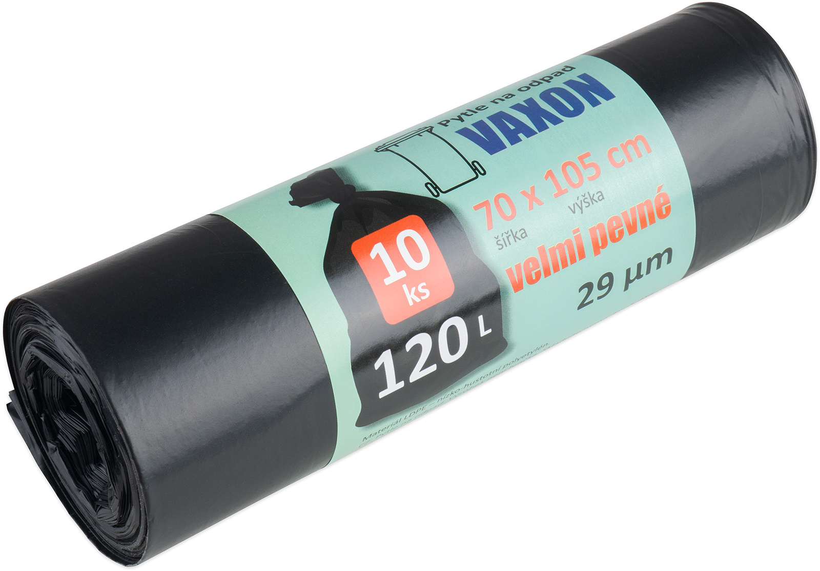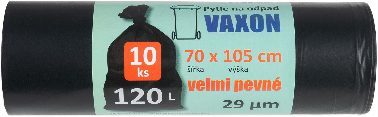 10 ks vysoce odolných pytlů na odpad o síle 29 µm, rozměry: šířka 70 cm, výška 105 cm, balení 10 ks.