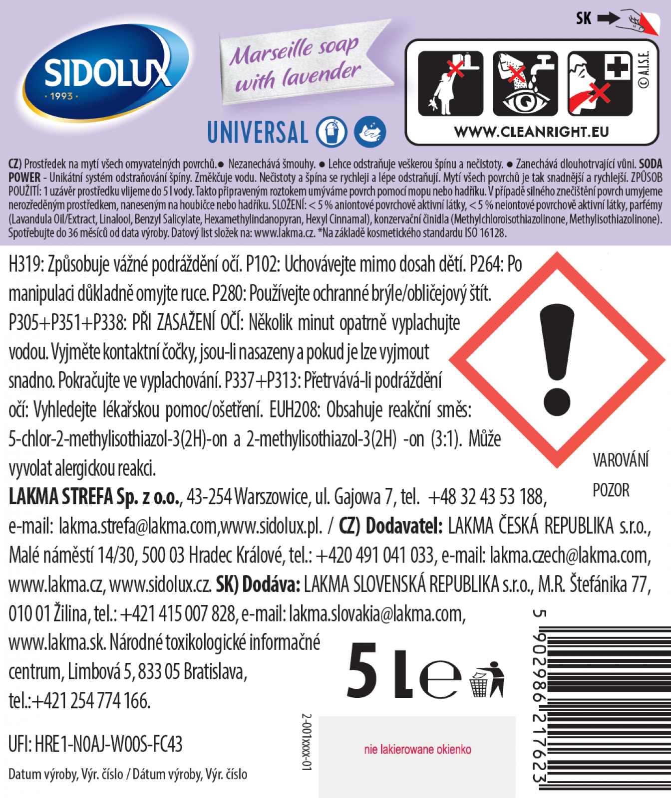 Díky unikátnímu systému Soda Power, který je součástí prostředku a jehož působení změkčuje vodu, odstraňuje velmi rychle nečistoty z povrchu. Skvěle se hodí na čištění veškerých omyvatelných povrchů. Příjemná dlouhotrvající vůně marseillského mýdla s levandulí.
