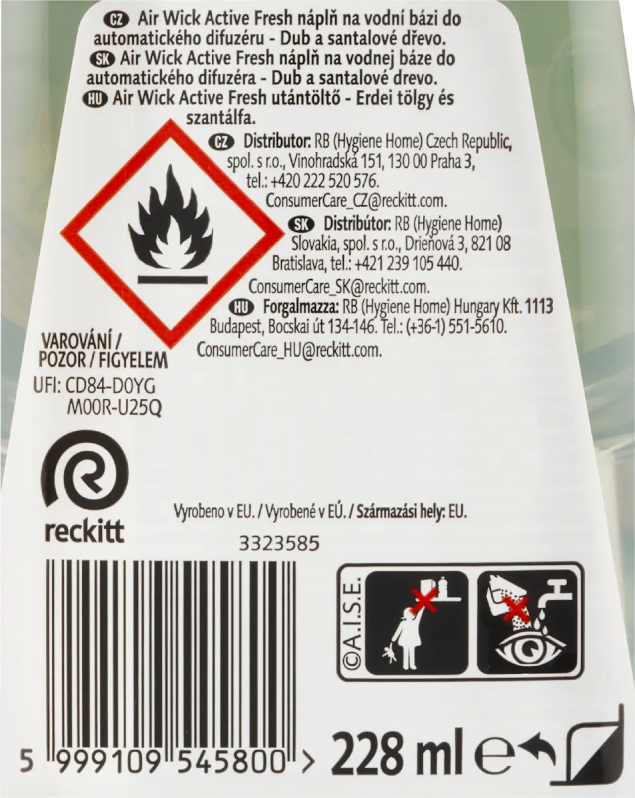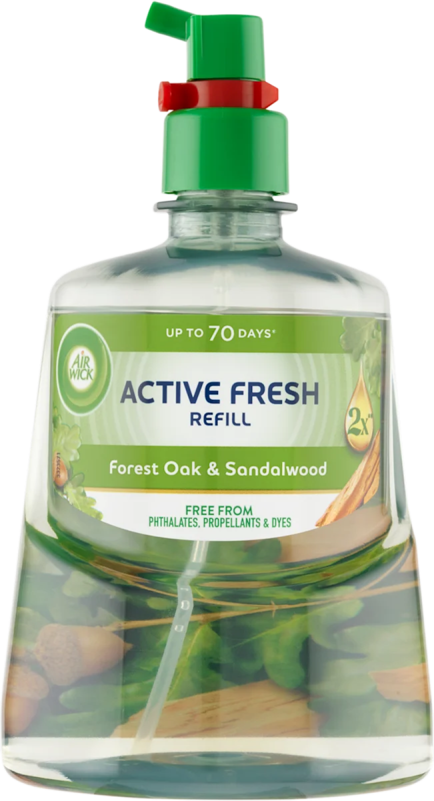 Neaerosolový osvěžovač vzduchu náhradní náplň na vodní bázi. Užijte si okouzlující vůně s přírodními esenciálními oleji. Obohaceno o molekuly neutralizující zápach, které se účinně vypořádají s nepříjemnými pachy. Složení na vodní bázi je výsledkem promyšleného výběru přísad: bez celý popis ftalátů, hnacích plynů a barviv. Vůně dubu a santalového dřeva navozuje příjemnou a uvolněnou atmosféru.