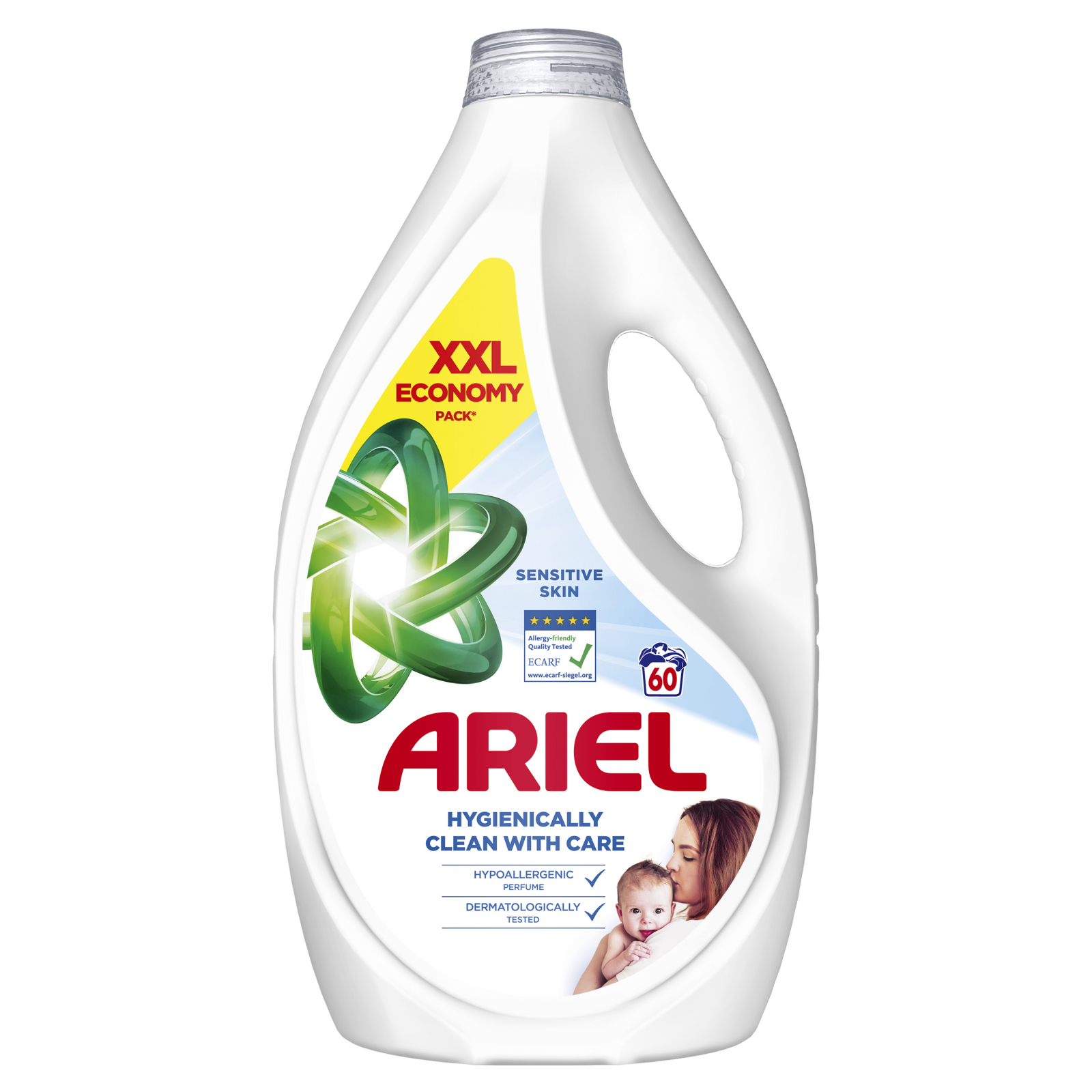ARIEL Sensitive gel 60 pracích dávek, vhodný pro praní bílého i barevného prádla nedráždí ani citlivou pokožku, odstraňuje řadu odolných skvrn.