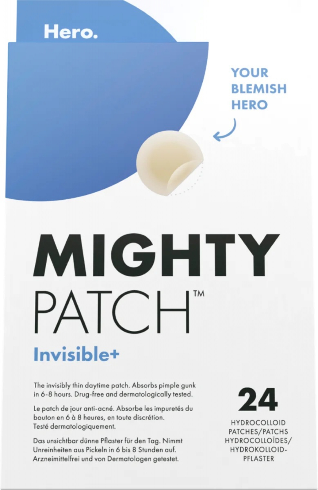 Hero. náplasti na akné Mighty Patch Invisible+ jsou hydrokoloidní náplasti, které vytahují nečistoty, maskují kožní vady a pomáhají při hojení pokožky. Náplasti jsou neviditelné, díky tomu jsou vhodné i na denní nošení. Náplasti na akné od značky Hero. budou vaším společníkem vždy, když budete chtít ukázat tu nejlepší tvář v jakékoli situaci.