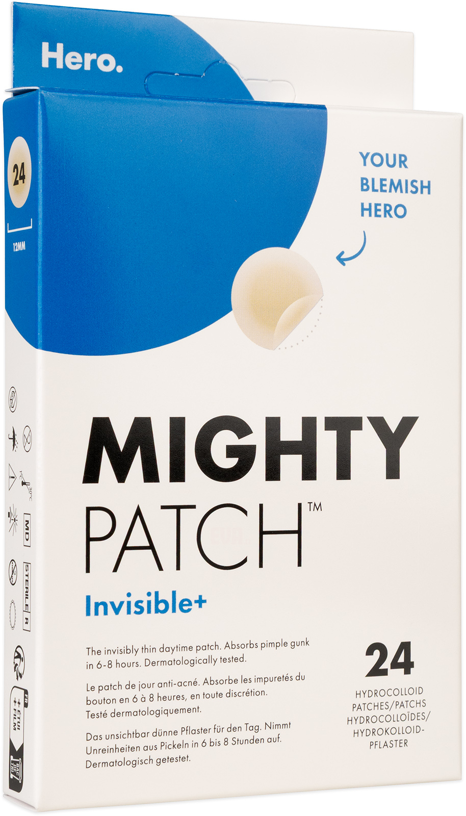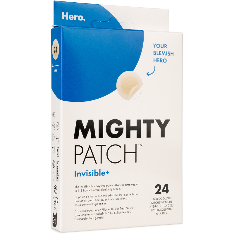 Hero. náplasti na akné Mighty Patch Invisible+ jsou hydrokoloidní náplasti, které vytahují nečistoty, maskují kožní vady a pomáhají při hojení pokožky. Náplasti jsou neviditelné, díky tomu jsou vhodné i na denní nošení. Náplasti na akné od značky Hero. budou vaším společníkem vždy, když budete chtít ukázat tu nejlepší tvář v jakékoli situaci.