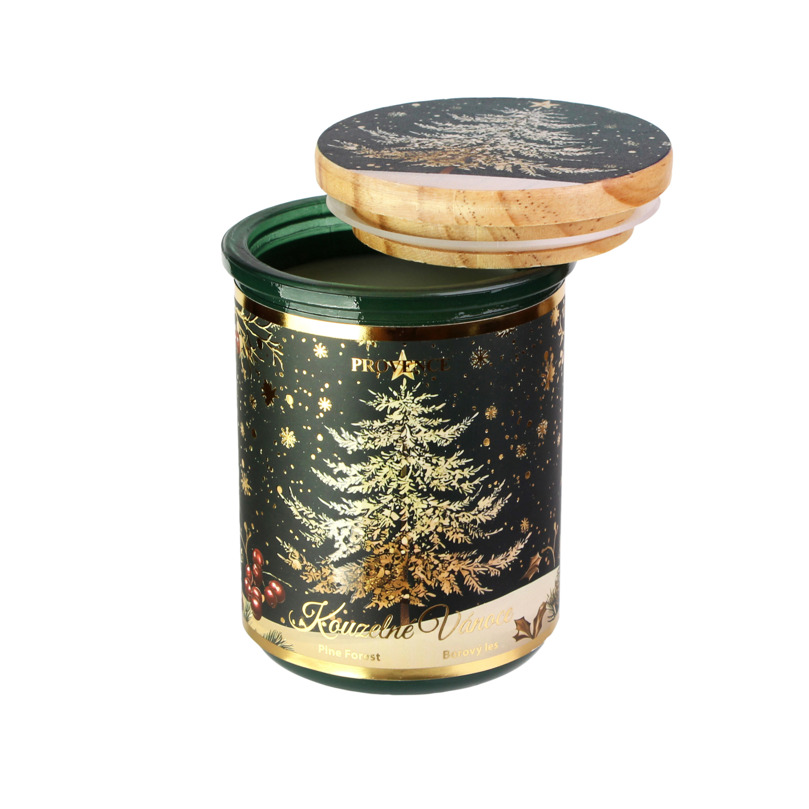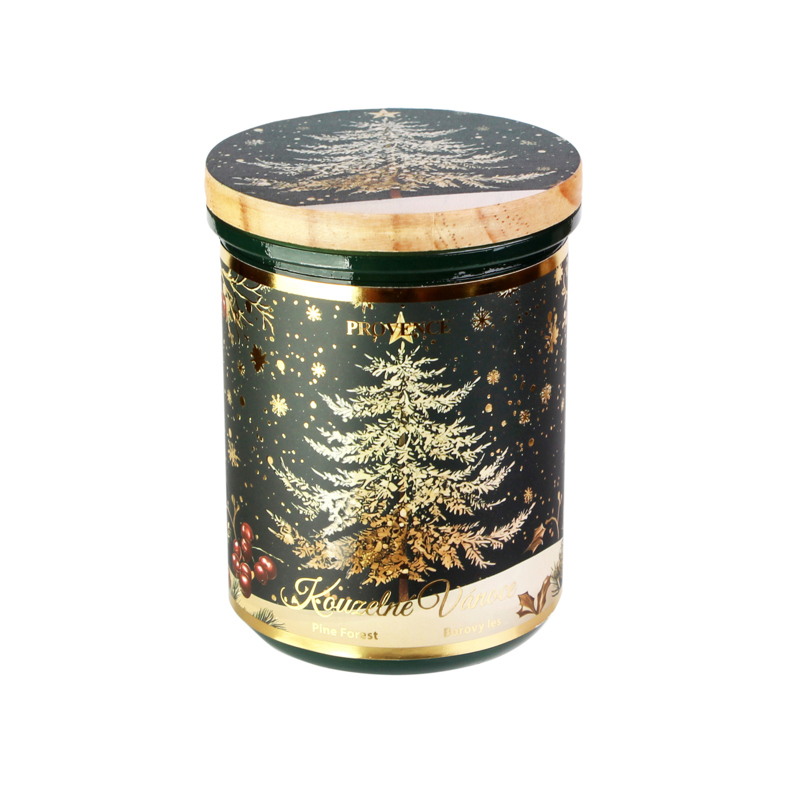 Vonná svíčka PROVENCE ve skle borový les je dokonalým doplňkem zimních večerů i ideálním dárkem pro každého milovníka vánoční atmosféry. Její vůně borového lesa navodí pocit čerstvého zimního dne, kdy vzduchem voní pryskyřice a jehličí. Svíčka ve skleněné nádobě s vánočním polepe celý popism a doplněna dřevěným víčkem se stejným motivem, které chrání vůni, když svíčka právě nehoří. Díky dlouhé době hoření až 30 hodin se stane spolehlivým společníkem pro sváteční chvíle i každodenní relaxaci. Průměr 8 cm. Výška11 cm. Délka hoření až 30 hodin. Hmotnost výplně 240 g.