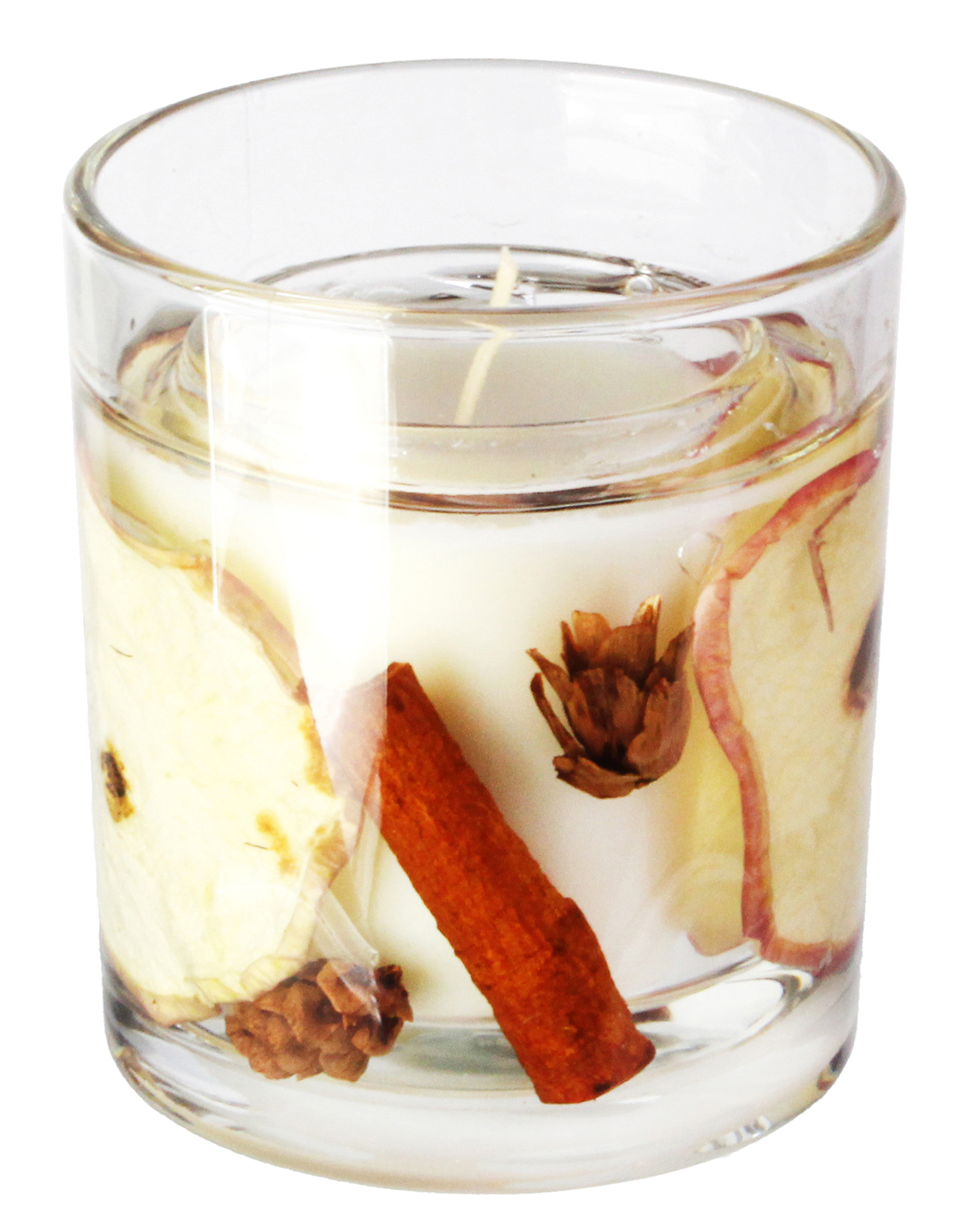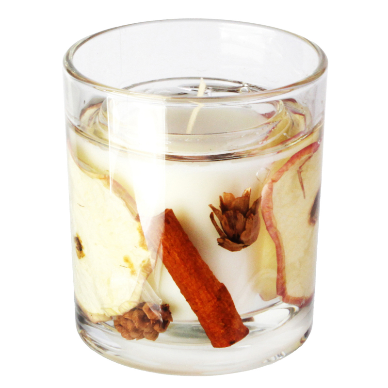 Vonná svíčka Provence jablečný mošt a koření je dokonalým spojením vůně, světla a vizuální krásy. Unikátní dvojité sklo s gelovou výplní ukrývá přírodní dekorace – plátek jablka, celé kousky skořice a malé šišky, které vytvářejí hřejivý vánoční motiv. Po zapálení se světlo nádher celý popisně rozptyluje mezi vrstvami skla a gelu, čímž vzniká útulné kouzlo, které připomíná plápolající svíčky u vánočního stolu. Vůně sladkého jablka a hřejivé skořice naplní domov vůní domácího pečení a klidné sváteční pohody. Tato svíčka je nejen krásným doplňkem interiéru, ale i ideálním dárkem pro všechny, kdo milují tradiční vánoční vůně. Průměr 8 cm. Výška 9 cm. Délka hoření až 18 hodin. Hmotnost výplně 206 g.