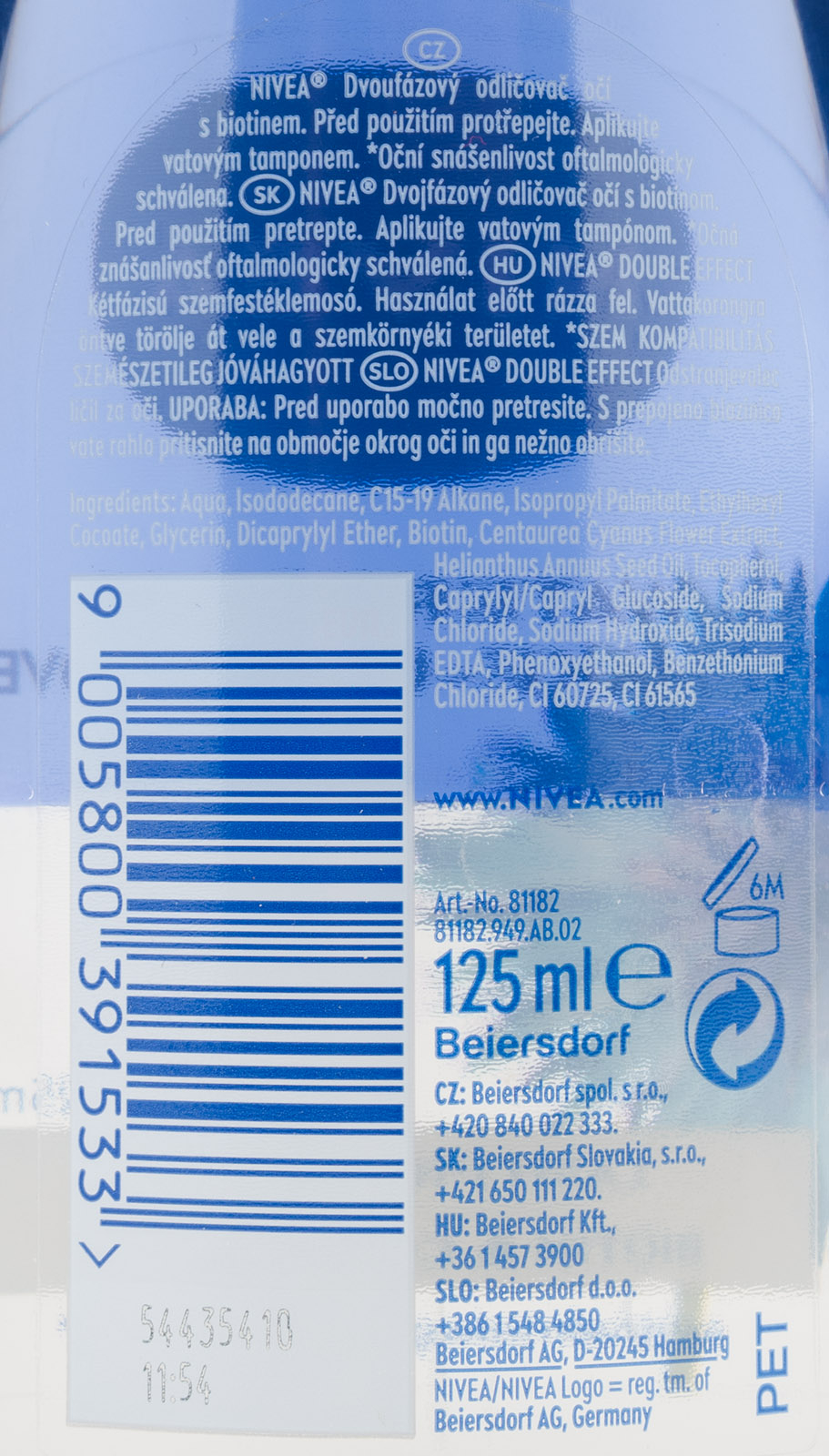 - dvoufázové složení obohacené o biotin pečuje o oční okolí a chrání řasy