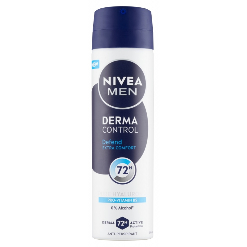 Spolehněte se na silný a účinný antiperspirant, který vás podrží v každé situaci a zabrání nepříjemnému pocení a zápachu až na 72 hodin. Inovativní složení nové řady antiperspirantů NIVEA MEN Derma Control obsahuje kyselinu hyaluronovou, která chrání citlivou pokožku v podpaží a dodává ji potřebnou hydrataci. Provitamín B5 posiluje přirozenou bariéru pokožky, zklidňuje a nabízí protizánětlivé účinky. Výsledkem je viditelně zdravější pokožka v podpaží a mizí také nepříjemné pocity svědění.