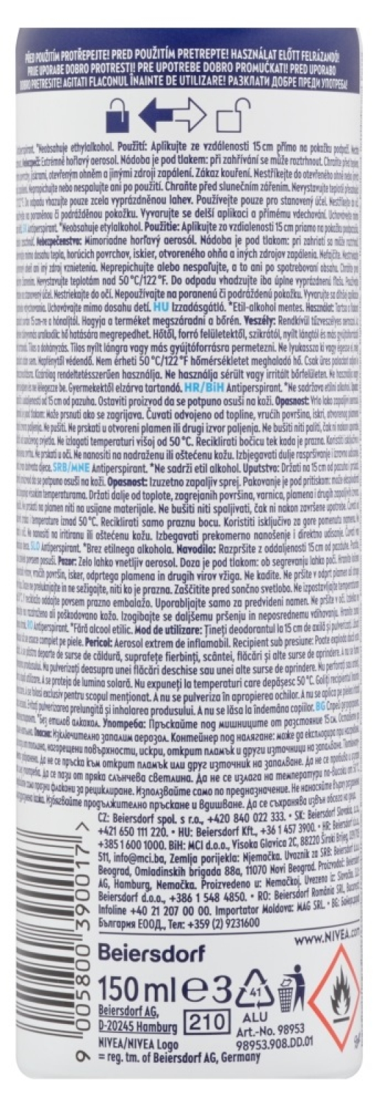 Varování: Nebezpečí: Extrémně hořlavý aerosol. Nádoba je pod tlakem: při zahřívání se může roztrhnout. Chraňte před teplem, horkými povrchy, jiskrami, otevřeným ohněm a jinými zdroji zapálení. Zákaz kouření. Nestříkejte do otevřeného ohně nebo jiných zdrojů zapálení. Nepropichujte nebo nespalujte ani po použití. Chraňte před slunečním zářením. Nevystavujte teplotě přesahující 50 °C/122 °F. Do odpadu vhazujte pouze zcela vyprázdněnou lahev. Používejte pouze pro stanovený účel. Nestříkejte do očí. Nepoužívejte na poraněnou či podrážděnou pokožku. Vyvarujte se delší aplikaci a přímému vdechování. Uchovávejte mimo dosah dětí.