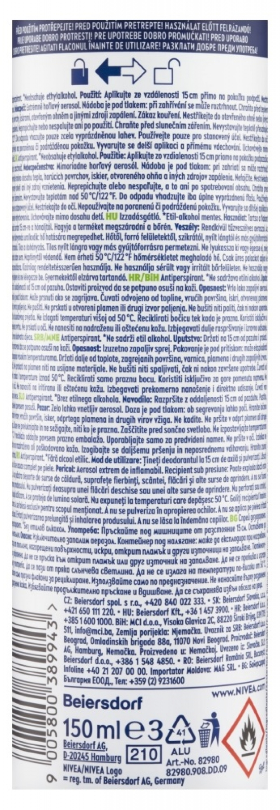 Varování: Nebezpečí: Extrémně hořlavý aerosol. Nádoba je pod tlakem: při zahřívání se může roztrhnout. Chraňte před teplem, horkými povrchy, jiskrami, otevřeným ohněm a jinými zdroji zapálení. Zákaz kouření. Nestříkejte do otevřeného ohně nebo jiných zdrojů zapálení. Nepropichujte nebo nespalujte ani po použití. Chraňte před slunečním zářením. Nevystavujte teplotě přesahující 50 °C/122 °F. Do odpadu vhazujte pouze zcela vyprázdněnou lahev. Používejte pouze pro stanovený účel. Nestříkejte do očí. Nepoužívejte na poraněnou či podrážděnou pokožku. Vyvarujte se delší aplikaci a přímému vdechování. Uchovávejte mimo dosah dětí.