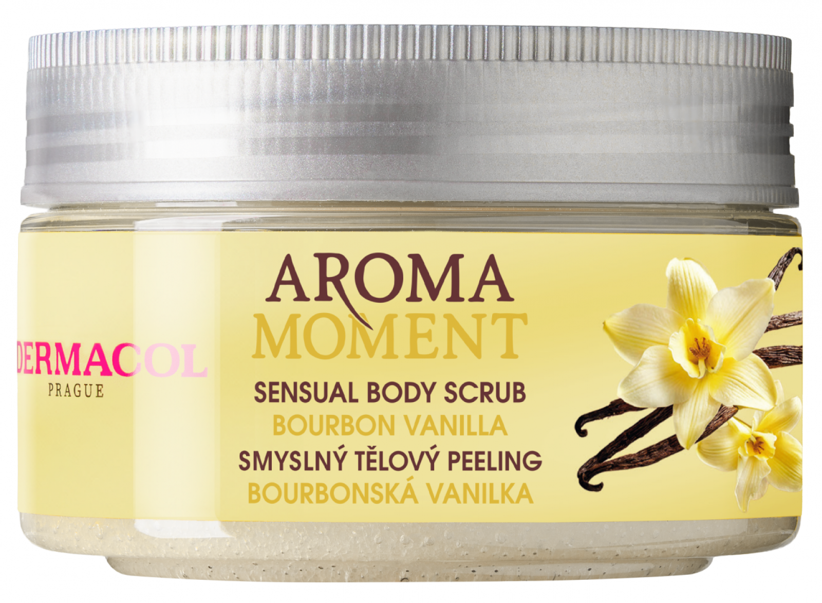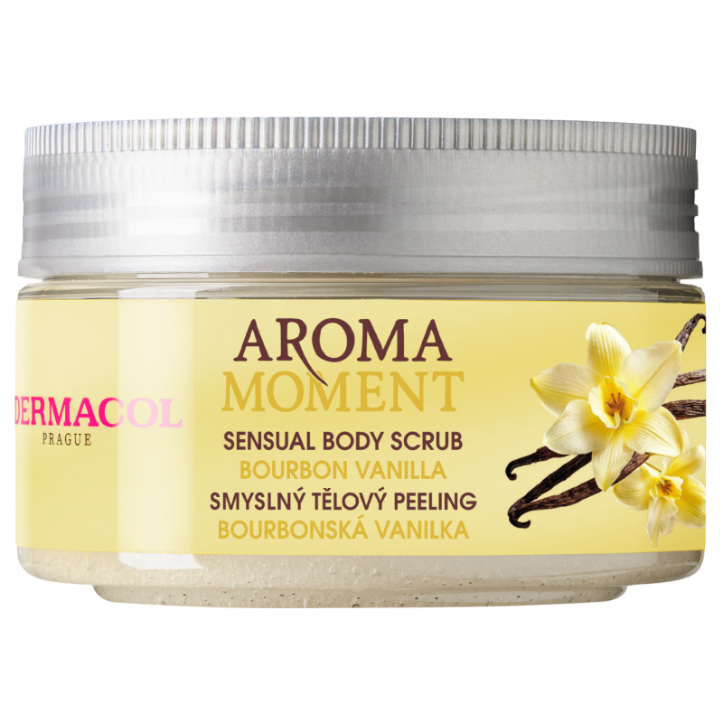 Jemný tělový peeling Aroma Moment s elegantní vůní smyslné bourbonské vanilky účinně a zároveň šetrně odstraňuje odumřelé kožní buňky. Cukrové krystalky pokožku jemně čistí, rozjasňují a zanechávají ji hebkou a hladkou na dotek. Peeling je obohacen o vitamín E, který pokožku vyži celý popisvuje, zvláčňuje a pomáhá udržovat její hydrataci. Hřejivá, krémová vůně vanilky promění každou sprchu či koupel v příjemný smyslový zážitek.