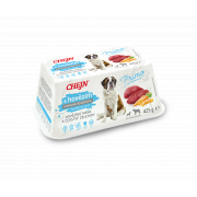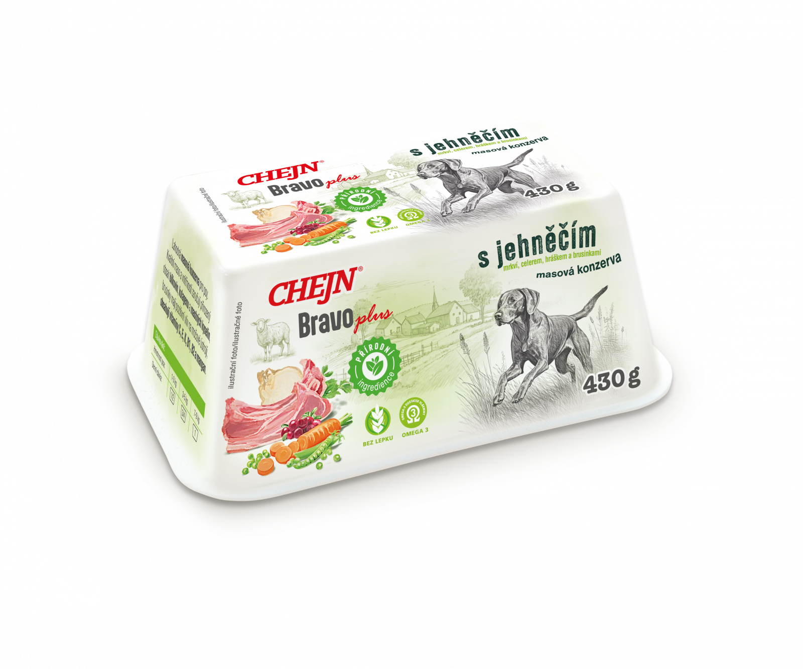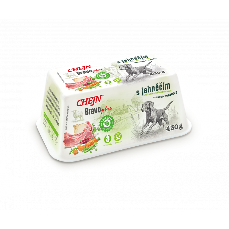 Lahodná masová konzerva s jehněčím, mrkví, celerem, hráškem a brusinkami pro psy všech plemen a věkových kategorií. Kvalitní maso a vnitřnosti zaručují přirozený obsah bílkovin, kolagenu a mastných kyselin, brusinky mají pozitivní vliv na močové ústrojí, obsahují vitamíny C, E, K celý popis, B1, B2 a mangan. Vařeno ve vlastní šťávě. Dobře stravitelné. Obsahuje přírodní kolagen. Snadné skladování. Stačí vyklopit z vaničky.